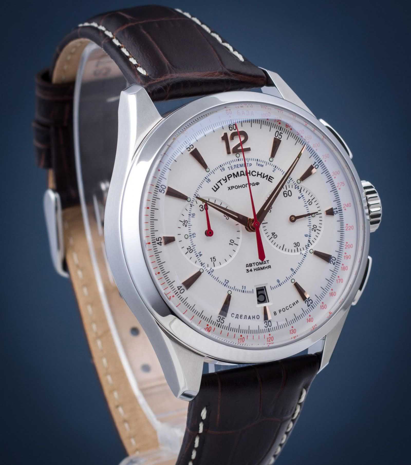 Мужские российские механические часы-хронографХронографФункция позволяет измерять отрезки времени с особой точностью: часы, минуты, секунды. Верным признаком хронографа является наличие на циферблате 3 дополнительных окошек-счётчиков. с секундомеромСекундомерСекундоме́р — прибор, способный измерять интервалы времени с точностью до долей секунды. Штурманские Открытый Космос NE86/1855018, механический механизм (автоматический калибр) с высокой точностью. Лимитированная серия - 500 экземпляров, посвящена первому выходу человека в открытый космос. Индивидуальная нумерация. Сапфировое стеклоСапфировое стеклоПрочный и надёжный материал из кристалла сапфира синтетического происхождения, характеризующийся особой твёрдостью и устойчивостью к царапинам и повреждениям. устойчивое к появлению царапин, обладающее высокой прозрачностью. Класс водозащиты: 50 метров, позволит защитить корпус от случайных брызг или капель дождя. Корпус часов изготовлен из стали. Кожаный ремешок на стандартной застёжке. Стрелки и метки с люминесцентным покрытиемЛюминесцентное покрытиеПозволяет считывать показания времени в темноте. Производители наносят на стрелки, часовые индексы, безель или поверхность циферблата светонакопительный состав, дающий холодное свечение.. Стальной корпус надежно защищает от повреждений механический японский калибр Seiko NE86 на 34 камня с запасом хода 42 часа. Подзавод у часов автоматический.