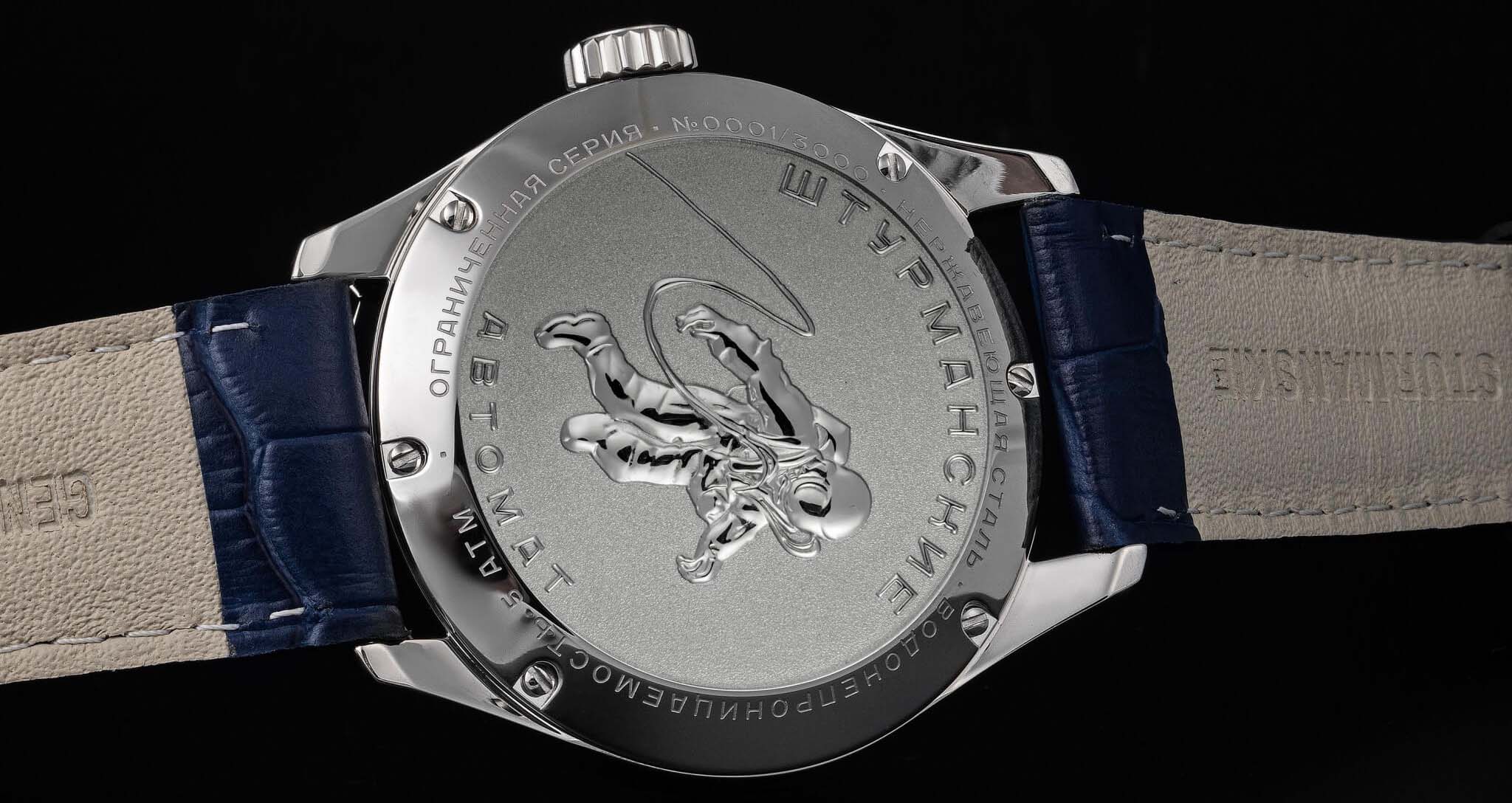 Мужские российские механические часы с минеральным стекломМинеральное стеклоМинеральное стекло представляет собой искусственно выращенный минерал кварца. Такое стекло отличается особой устойчивостью к повреждениям и царапинам. Уступает по некоторым качествам сапфировому стеклу. Штурманские Открытый Космос Day-Date Автомат NH36/1891771, механический механизм (автоматический калибр) с высокой точностью. Лимитированная серия - 3000 экземпляров. Класс водозащиты: 50 метров, позволит защитить корпус от случайных брызг или капель дождя. Корпус часов изготовлен из стали. Кожаный ремешок на стандартной застёжке. Окошки дня недели и даты находятся в положении 3 часа. Сзади украшены изображением астронавта в открытом космосе по мотивам картины Алексея Леонова.