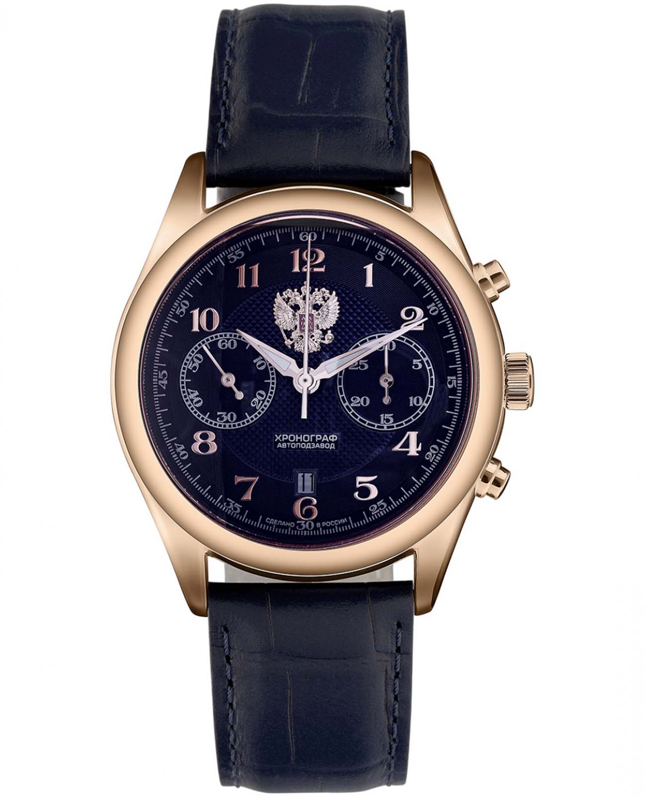 Российские часы-хронографХронографФункция позволяет измерять отрезки времени с особой точностью: часы, минуты, секунды. Верным признаком хронографа является наличие на циферблате 3 дополнительных окошек-счётчиков. с секундомеромСекундомерСекундоме́р — прибор, способный измерять интервалы времени с точностью до долей секунды. Слава Сенат 1883255/300-4617 оснащены механизмом 4617, что обеспечивает исключительную надежность и точность хода. Корпус часов выполнен из стали с IP-покрытиемIP-покрытиеМетод ионного напыления. Демонстрирует повышенную устойчивость к истиранию, окислению и химическим веществам. Под воздействием высокого давления и температуры около 1500°C молекулы металла надёжно соединяются с частицами корпуса часов., что придает им долговечность и устойчивость к внешним воздействиям. Сапфировое стеклоСапфировое стеклоПрочный и надёжный материал из кристалла сапфира синтетического происхождения, характеризующийся особой твёрдостью и устойчивостью к царапинам и повреждениям. устойчиво к мелким механическим повреждениям, что гарантирует долговечность и сохранение первоначального вида. Стрелки и метки с люминесцентным покрытиемЛюминесцентное покрытиеПозволяет считывать показания времени в темноте. Производители наносят на стрелки, часовые индексы, безель или поверхность циферблата светонакопительный состав, дающий холодное свечение.. Окошко даты в положении 6 часов.
