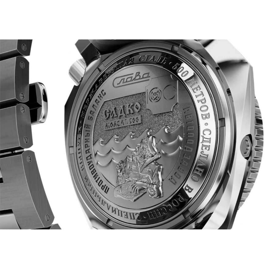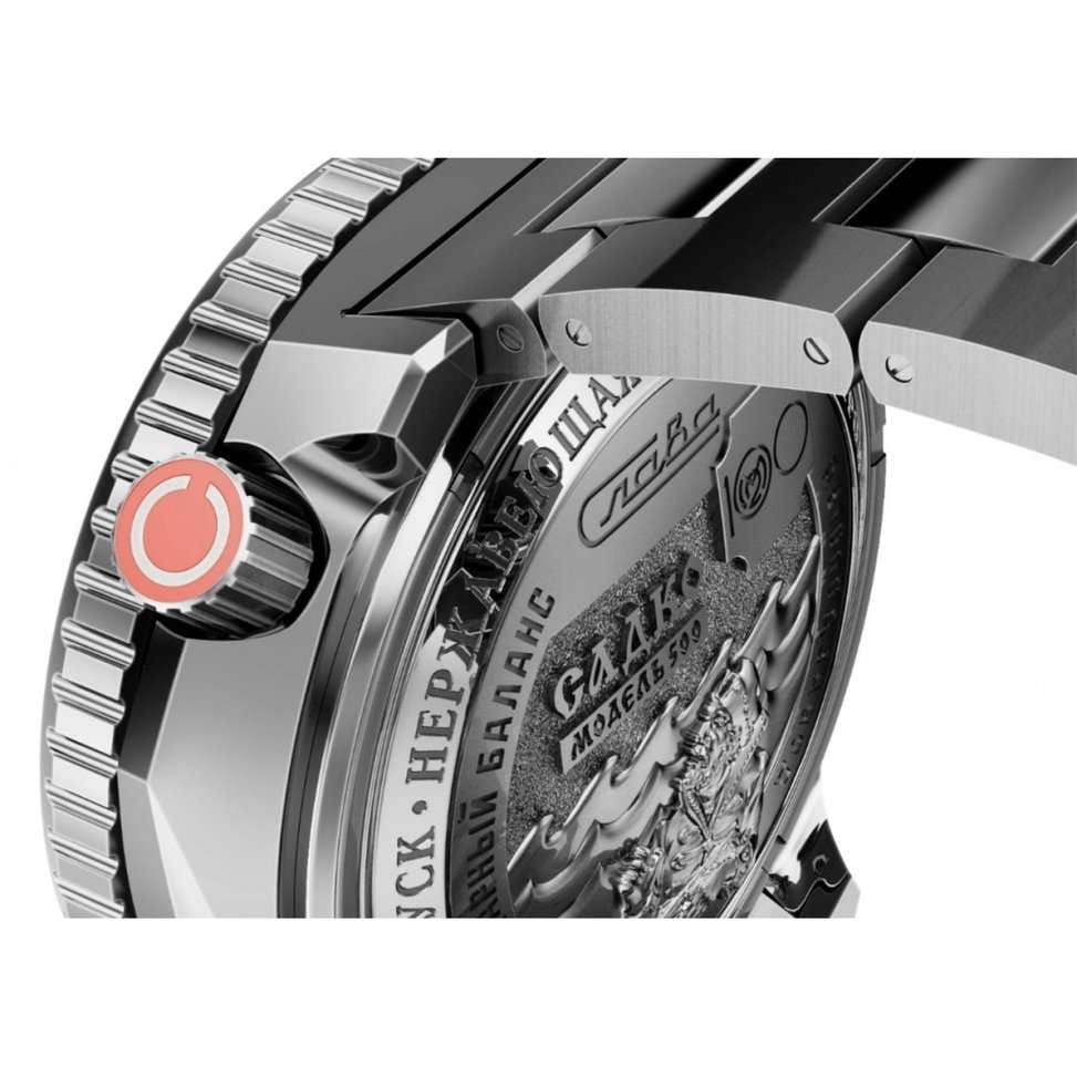 Стильные часы Слава Садко 5007167/100-2427 — станут надежным спутником как в повседневной жизни, так и при покорении морских глубин. Эти часы, созданные в России, оснащены механическим механизмом Слава 2427 с автоподзаводом, который обеспечивает точность и надежность. Корпус выполнен из высококачественной стали 316L. Поворотный безельБезельВнешний ободок, закрепляющий стекло. В спортивных часах так называется поворотное кольцо с делениями на циферблате, выполняет роль таймера – замеряет отрезки времени на шкале. Неподвижный безель – элемент декора. Однонаправленно вращающийся безель на дайверских часах позволяет фиксировать моменты погружения и выныривания на поверхность. часов с IP-покрытиемIP-покрытиеМетод ионного напыления. Демонстрирует повышенную устойчивость к истиранию, окислению и химическим веществам. Под воздействием высокого давления и температуры около 1500°C молекулы металла надёжно соединяются с частицами корпуса часов. красного и синего цвета придаёт модели особую элегантность и долговечность. Черный циферблат с метками в виде штрихов надежно защищён сапфировым стекломСапфировое стеклоПрочный и надёжный материал из кристалла сапфира синтетического происхождения, характеризующийся особой твёрдостью и устойчивостью к царапинам и повреждениям., толщина которого составляет 3 мм. Заводная головка с защитой, расположенная в положении 2 часа, и литой стальной браслет с застежкой «бабочка»Застёжка "бабочка"Такой вид застёжки дополняется предохранителями, помогающими избежать случайного раскрытия браслета. Обладают изящным исполнением. обеспечивают комфорт и удобство в использовании. Эти часы имеют водозащиту 500WR, позволяя погружаться на глубину до 50 атмосфер, что делает их идеальными для дайвинга. Автоматический гелиевый клапан добавляет дополнительную надежность при подводных приключениях. Функциональность часов дополнена календарём с отображением числа и дня недели, который удобно расположен в позиции 6 часов. Кнопка быстрого перевода календаря делает настройку простой и лёгкой. Стрелки и метки обладают люминесцентным покрытиемЛюминесцентное покрытиеПозволяет считывать показания времени в темноте. Производители наносят на стрелки, часовые индексы, безель или поверхность циферблата светонакопительный состав, дающий холодное свечение., которое светится в темноте после зарядки на свету, обеспечивая отличную видимость в любых условиях. Каждый экземпляр из лимитированной серии в 500 штук уникален и имеет номер на задней крышке, украшенной объёмным изображением, выполненным методом чеканки. Механизм часов поддерживает 25 камней и работает с частотой 18000 полуколебаний в час, предлагая запас хода до 40 часов и возможность ручного завода. Противоударное устройство оси баланса добавляет уверенности в их долговечности. Эти часы — идеальный выбор для тех, кто ценит стиль, надежность и функциональность в одном аксессуаре.