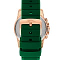 Мужские наручные часы Slazenger SL.09.2012.2.05 сочетают в себе спортивный дизайн и функциональность современных технологий. Модель обладает круглым корпусом диаметром 47 мм, изготовленным из суперметалла с IP-покрытиемIP-покрытиеМетод ионного напыления. Демонстрирует повышенную устойчивость к истиранию, окислению и химическим веществам. Под воздействием высокого давления и температуры около 1500°C молекулы металла надёжно соединяются с частицами корпуса часов., что обеспечивает высокую устойчивость к внешним воздействиям. Браслет выполнен из зеленого полимерного материала, а застежка стандартная, гарантирующая комфортное ношение и безопасность. БезельБезельВнешний ободок, закрепляющий стекло. В спортивных часах так называется поворотное кольцо с делениями на циферблате, выполняет роль таймера – замеряет отрезки времени на шкале. Неподвижный безель – элемент декора. Однонаправленно вращающийся безель на дайверских часах позволяет фиксировать моменты погружения и выныривания на поверхность. с IP-покрытиемIP-покрытиеМетод ионного напыления. Демонстрирует повышенную устойчивость к истиранию, окислению и химическим веществам. Под воздействием высокого давления и температуры около 1500°C молекулы металла надёжно соединяются с частицами корпуса часов.. Зеленый циферблат дополнен индексами и тремя малыми циферблатами для отображения различных функций, а также защищен прочным минеральным стекломМинеральное стеклоМинеральное стекло представляет собой искусственно выращенный минерал кварца. Такое стекло отличается особой устойчивостью к повреждениям и царапинам. Уступает по некоторым качествам сапфировому стеклу. с люминесцентным покрытиемЛюминесцентное покрытиеПозволяет считывать показания времени в темноте. Производители наносят на стрелки, часовые индексы, безель или поверхность циферблата светонакопительный состав, дающий холодное свечение. для лучшей видимости в темноте. Часы работают на кварцевом механизме, что гарантирует точное время без необходимости подзаводки. Водонепроницаемость часов достигает уровня 5 атмосфер (WR50), что позволяет использовать их во время плавания, однако не рекомендуется для глубоководного дайвинга.