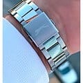 Мужские наручные часы Slazenger SL.09.2035.2.02 сочетают в себе классический дизайн и надежность современных технологий. Модель обладает круглым корпусом диаметром 46 мм, изготовленным из материала supermetal с серебряным покрытием, что обеспечивает высокую устойчивость к внешним воздействиям. БезельБезельВнешний ободок, закрепляющий стекло. В спортивных часах так называется поворотное кольцо с делениями на циферблате, выполняет роль таймера – замеряет отрезки времени на шкале. Неподвижный безель – элемент декора. Однонаправленно вращающийся безель на дайверских часах позволяет фиксировать моменты погружения и выныривания на поверхность. с IP-покрытиемIP-покрытиеМетод ионного напыления. Демонстрирует повышенную устойчивость к истиранию, окислению и химическим веществам. Под воздействием высокого давления и температуры около 1500°C молекулы металла надёжно соединяются с частицами корпуса часов.. Браслет выполнен из суперметалла с раскладной застежкойРаскладной замокДанный вариант застежки используется только на часах с металлическим браслетом. Отличительная особенность такого крепления в том, что длина браслета становится универсальной и вы можете самостоятельно отрегулировать нужный вам размер – застежка просто двигается по браслету часов., гарантирующей комфортное ношение и безопасность.