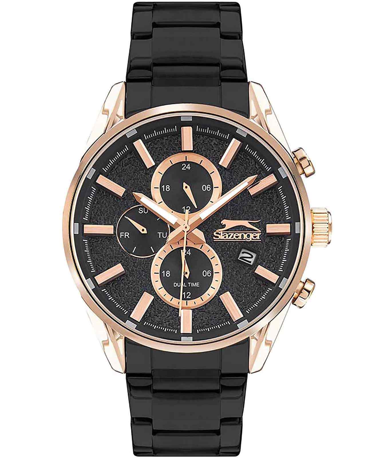 Часы Slazenger SL.09.2059.2.03 представляют собой стильное и функциональное дополнение к вашему образу. Их черный циферблат и корпус с безелемБезельВнешний ободок, закрепляющий стекло. В спортивных часах так называется поворотное кольцо с делениями на циферблате, выполняет роль таймера – замеряет отрезки времени на шкале. Неподвижный безель – элемент декора. Однонаправленно вращающийся безель на дайверских часах позволяет фиксировать моменты погружения и выныривания на поверхность. из суперметалла с IP-покрытиемIP-покрытиеМетод ионного напыления. Демонстрирует повышенную устойчивость к истиранию, окислению и химическим веществам. Под воздействием высокого давления и температуры около 1500°C молекулы металла надёжно соединяются с частицами корпуса часов. создают элегантный и современный вид, который подчеркнет вашу индивидуальность. Эти мужские часы оснащены кварцевым механизмом, обеспечивающим точность хода. Минеральное стеклоМинеральное стеклоМинеральное стекло представляет собой искусственно выращенный минерал кварца. Такое стекло отличается особой устойчивостью к повреждениям и царапинам. Уступает по некоторым качествам сапфировому стеклу. защищает циферблат от царапин, а люминесцентное покрытиеЛюминесцентное покрытиеПозволяет считывать показания времени в темноте. Производители наносят на стрелки, часовые индексы, безель или поверхность циферблата светонакопительный состав, дающий холодное свечение. на стрелках позволяет легко считывать время даже в темноте. Функциональность часов дополнена вторым часовым поясомВторой часовой поясФункция, позволяющая отображать время двух часовых поясов одновременно., 24-часовым указателем времени, календарем даты в районе 4 часа и дня недели. Черный браслет из суперметалла с IP-покрытиемIP-покрытиеМетод ионного напыления. Демонстрирует повышенную устойчивость к истиранию, окислению и химическим веществам. Под воздействием высокого давления и температуры около 1500°C молекулы металла надёжно соединяются с частицами корпуса часов. и с раскладной застёжкойРаскладная застёжкаТакой тип застёжки используется только на браслетах из металла. Она никогда не раскрывается полностью, происходит разделение на 2 и более частей. Раскладывающая застёжка снизит вероятность потери часов к минимуму. гармонично дополняет общий дизайн. Размер корпуса составляет 44 мм в диаметре и 12 мм в толщину, что делает их удобными для повседневного ношения. А водозащита уровня 5 ATM делает их надежными спутниками даже в условиях повышенной влажности.