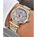 Женские наручные часы Slazenger SL.09.2063.4.02 сочетают в себе классический дизайн и высокое качество исполнения. Модель обладает круглым корпусом диаметром 36 мм, изготовленным из суперметалла с золотистым IP-покрытиемIP-покрытиеМетод ионного напыления. Демонстрирует повышенную устойчивость к истиранию, окислению и химическим веществам. Под воздействием высокого давления и температуры около 1500°C молекулы металла надёжно соединяются с частицами корпуса часов. покрытием, что обеспечивает устойчивость к внешним воздействиям. Браслет выполнен из суперметалла с IP-покрытиемIP-покрытиеМетод ионного напыления. Демонстрирует повышенную устойчивость к истиранию, окислению и химическим веществам. Под воздействием высокого давления и температуры около 1500°C молекулы металла надёжно соединяются с частицами корпуса часов. на раскладной застёжкеРаскладная застёжкаТакой тип застёжки используется только на браслетах из металла. Она никогда не раскрывается полностью, происходит разделение на 2 и более частей. Раскладывающая застёжка снизит вероятность потери часов к минимуму.. Белый циферблат украшен логотипом бренда и метками времени. Имеются дополнительные малые циферблаты для отображения даты, дня недели и текущего времени в 24-часовом формате. Для защиты используется минеральное стеклоМинеральное стеклоМинеральное стекло представляет собой искусственно выращенный минерал кварца. Такое стекло отличается особой устойчивостью к повреждениям и царапинам. Уступает по некоторым качествам сапфировому стеклу., обеспечивающее прочную защиту от царапин. Стрелки и метки имеют люминесцентное покрытиеЛюминесцентное покрытиеПозволяет считывать показания времени в темноте. Производители наносят на стрелки, часовые индексы, безель или поверхность циферблата светонакопительный состав, дающий холодное свечение., что позволяет легко читать время в темноте. Часы работают на японском кварцевом механизме, который обеспечивает точность хода без необходимости подзаводки. Водонепроницаемость часов составляет 3 атмосферы (WR30), что позволяет защитить корпус от случайных брызг или капель дождя.