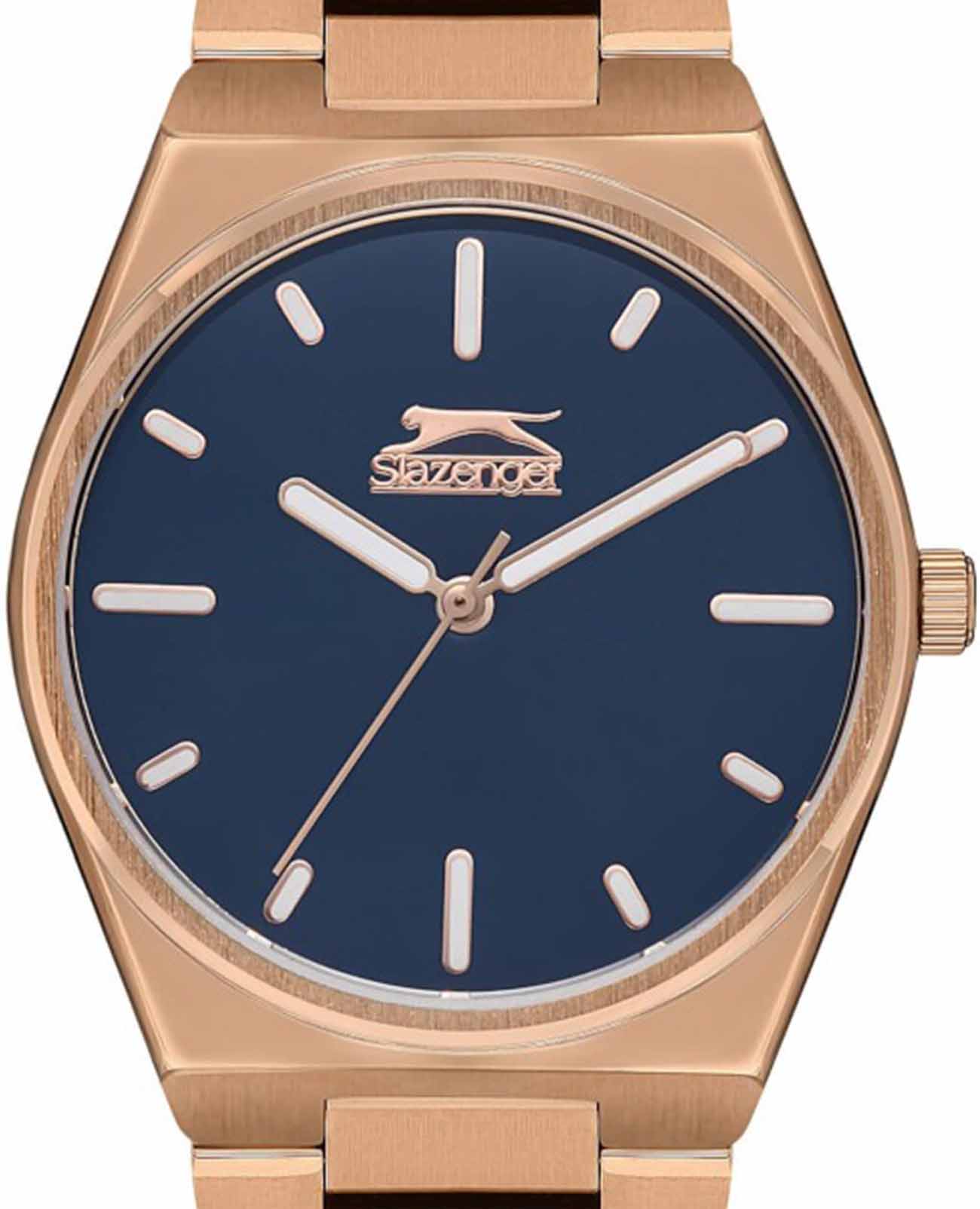 Женские наручные часы Slazenger SL.09.2116.3.02 — это элегантный аксессуар, сочетающий в себе стиль и функциональность. Модель обладает круглым корпусом диаметром 34 мм. Корпус и браслет часов выполнены из суперметалла с IP-покрытиемIP-покрытиеМетод ионного напыления. Демонстрирует повышенную устойчивость к истиранию, окислению и химическим веществам. Под воздействием высокого давления и температуры около 1500°C молекулы металла надёжно соединяются с частицами корпуса часов. цвета розового золота, что обеспечивает устойчивость к царапинам и коррозии. Браслет с раскладной застежкойРаскладная застёжкаТакой тип застёжки используется только на браслетах из металла. Она никогда не раскрывается полностью, происходит разделение на 2 и более частей. Раскладывающая застёжка снизит вероятность потери часов к минимуму., которая гарантирует удобство и надежность при ношении. Для защиты синего циферблата используется минеральное стеклоМинеральное стеклоМинеральное стекло представляет собой искусственно выращенный минерал кварца. Такое стекло отличается особой устойчивостью к повреждениям и царапинам. Уступает по некоторым качествам сапфировому стеклу., устойчивое к царапинам и повреждениям. Люминесцентное покрытиеЛюминесцентное покрытиеПозволяет считывать показания времени в темноте. Производители наносят на стрелки, часовые индексы, безель или поверхность циферблата светонакопительный состав, дающий холодное свечение. на стрелках и метках обеспечивает отличную видимость в темноте. Часы оснащены кварцевым механизмом, обеспечивающим точность хода с минимальной погрешностью. Водонепроницаемость модели составляет 30 метров (3 ATM), что позволяет использовать их при мытье рук или под дождем, но не рекомендуется для плавания или дайвинга.