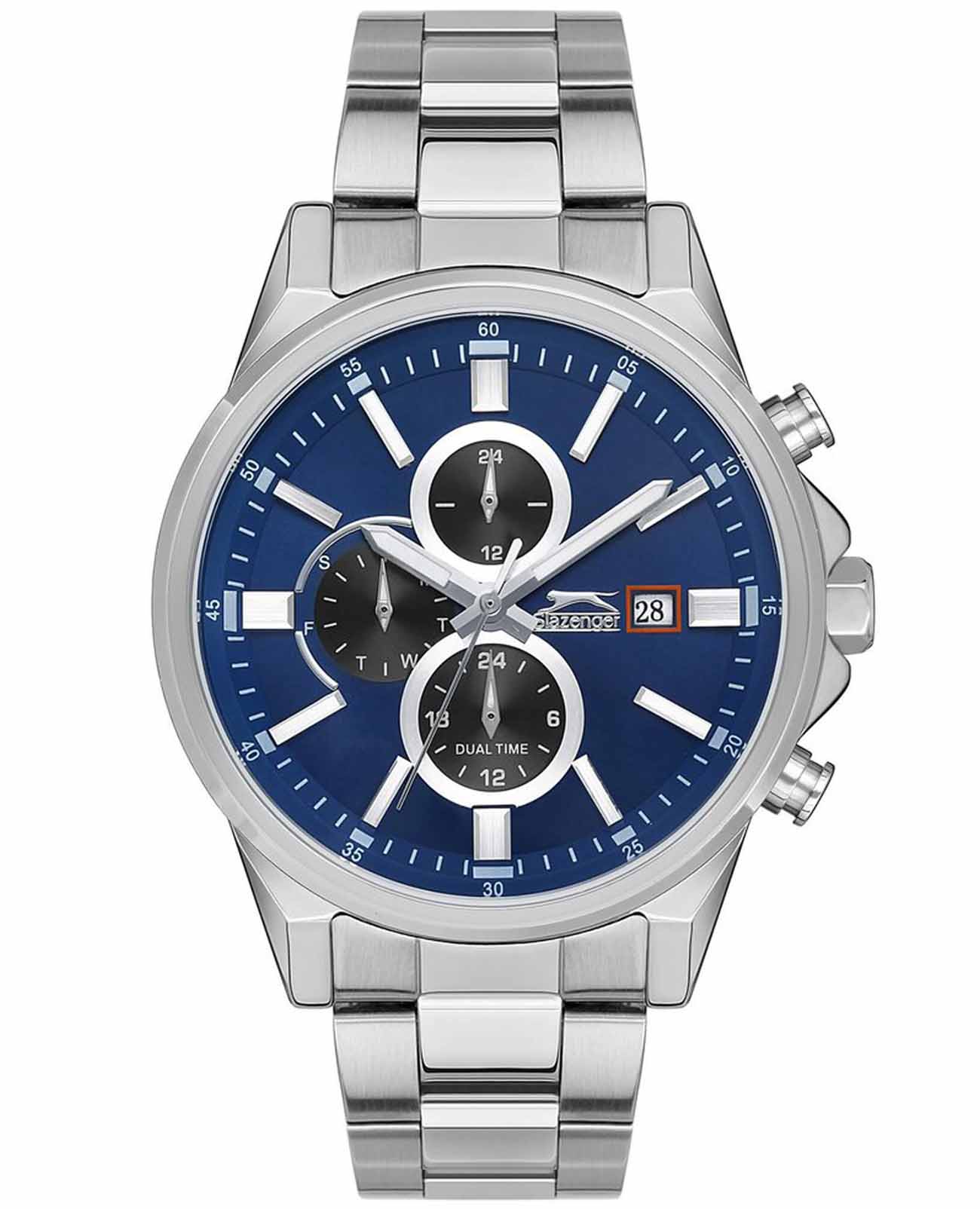 Часы Slazenger SL.09.2139.2.02 воплощают в себе элегантность и практичность, идеально подходящие для современных мужчин. Их синий циферблат защищен минеральным стекломМинеральное стеклоМинеральное стекло представляет собой искусственно выращенный минерал кварца. Такое стекло отличается особой устойчивостью к повреждениям и царапинам. Уступает по некоторым качествам сапфировому стеклу. и заключен в серебристый корпус диаметром 46 мм, который изготовлен из прочного суперметалла. Часы оснащены указателями второго часового пояса, дня недели и текущего времени в 24-х часовом формате на дополнительных малых циферблатах. Окошко даты расположено в положении 3 часов. Стрелки и метки имеют люминесцентное покрытиеЛюминесцентное покрытиеПозволяет считывать показания времени в темноте. Производители наносят на стрелки, часовые индексы, безель или поверхность циферблата светонакопительный состав, дающий холодное свечение., что позволяет легко считывать время в темноте. Надежный кварцевый механизм обеспечивает точность, а водозащита 5 ATM делает их устойчивыми к воздействию воды. Браслет из суперметалла имеет раскладную застёжкуРаскладная застёжкаТакой тип застёжки используется только на браслетах из металла. Она никогда не раскрывается полностью, происходит разделение на 2 и более частей. Раскладывающая застёжка снизит вероятность потери часов к минимуму., что подчеркивает современный стиль и позволяет легко снимать часы. Ширина ремешка 22 мм.