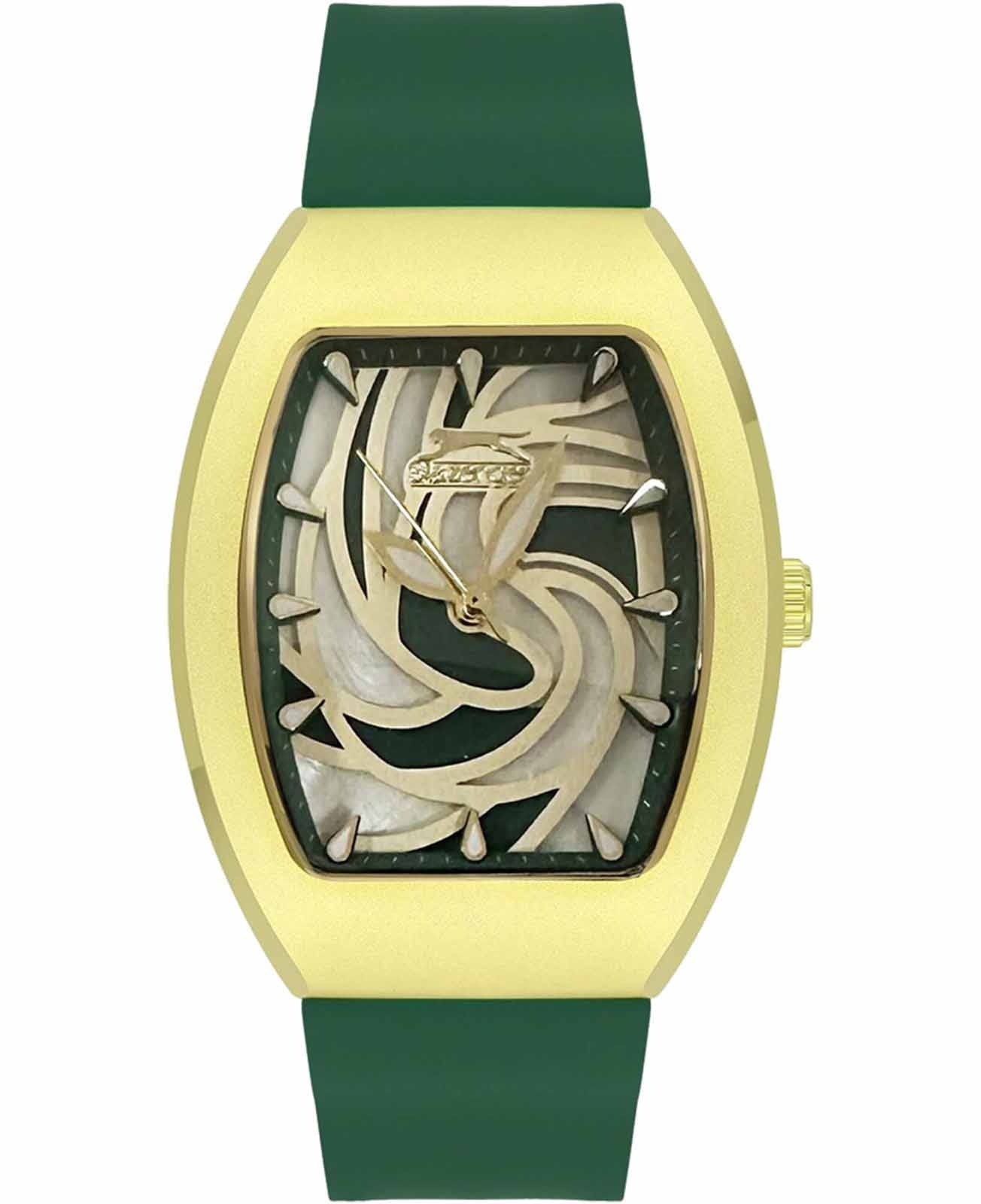 Часы Slazenger SL.09.2226.3.02 — это стильное сочетание современного дизайна и практичности. Модель оснащена надёжным кварцевым механизмом, благодаря чему отличается высокой точностью хода. Корпус часов выполнен из металла с IP-покрытиемIP-покрытиеМетод ионного напыления. Демонстрирует повышенную устойчивость к истиранию, окислению и химическим веществам. Под воздействием высокого давления и температуры около 1500°C молекулы металла надёжно соединяются с частицами корпуса часов. в оригинальной бочкообразной форме, задняя крышка закреплена на винтах для дополнительной прочности. Минеральное стеклоМинеральное стеклоМинеральное стекло представляет собой искусственно выращенный минерал кварца. Такое стекло отличается особой устойчивостью к повреждениям и царапинам. Уступает по некоторым качествам сапфировому стеклу. защищает циферблат от царапин, а водозащита уровня WR 30 позволяет не беспокоиться о попадании брызг. Особое внимание привлекает ремешок зелёного цвета из прочной резины с классической застёжкой, который обеспечивает комфортное ношение в течение всего дня. Стрелки и метки снабжены люминесцентным покрытиемЛюминесцентное покрытиеПозволяет считывать показания времени в темноте. Производители наносят на стрелки, часовые индексы, безель или поверхность циферблата светонакопительный состав, дающий холодное свечение., что позволяет легко считывать время в темноте. Размеры корпуса составляют 34 мм в ширину, 45 мм в высоту и 13 мм в толщину, а общий вес изделия — 68 грамм. Эти часы станут отличным выбором для тех, кто ценит оригинальный стиль и надёжность.