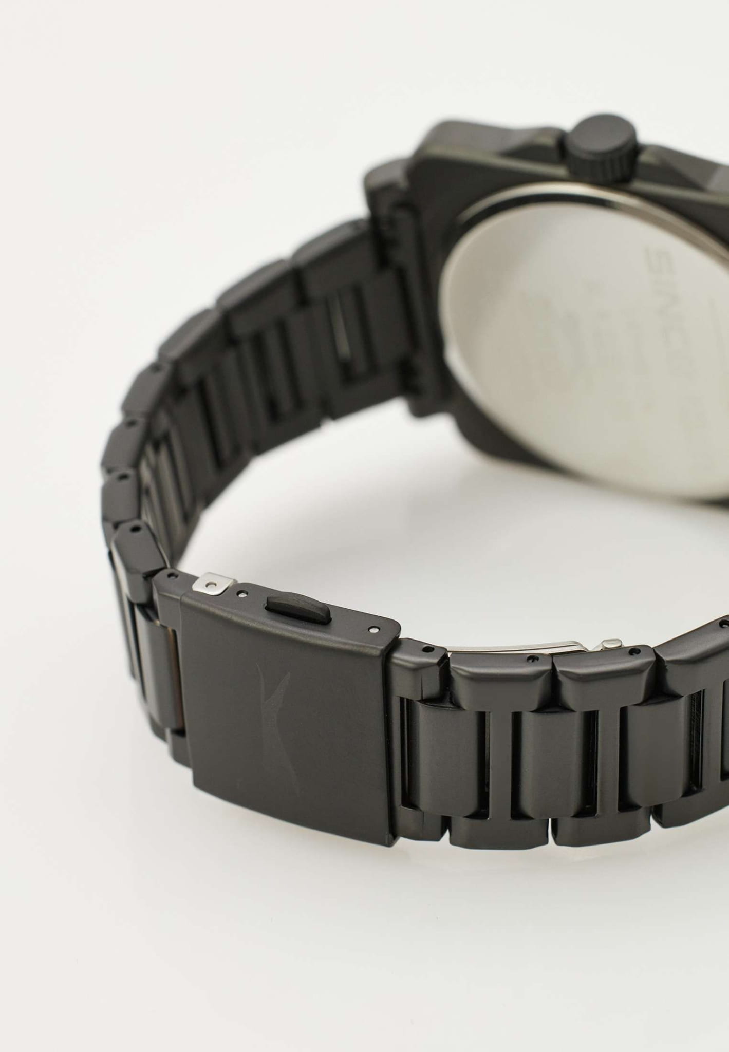 Часы Slazenger SL.09.2232.1.05 — это современная модель, сочетающая стиль и практичность. Корпус квадратной формы выполнен из прочного металла с черным IP-покрытиемIP-покрытиеМетод ионного напыления. Демонстрирует повышенную устойчивость к истиранию, окислению и химическим веществам. Под воздействием высокого давления и температуры около 1500°C молекулы металла надёжно соединяются с частицами корпуса часов., а круглый красный циферблат придает дизайну особую выразительность. На вращающийся безельБезельВнешний ободок, закрепляющий стекло. В спортивных часах так называется поворотное кольцо с делениями на циферблате, выполняет роль таймера – замеряет отрезки времени на шкале. Неподвижный безель – элемент декора. Однонаправленно вращающийся безель на дайверских часах позволяет фиксировать моменты погружения и выныривания на поверхность. нанесено черное IP-покрытиеIP-покрытиеМетод ионного напыления. Демонстрирует повышенную устойчивость к истиранию, окислению и химическим веществам. Под воздействием высокого давления и температуры около 1500°C молекулы металла надёжно соединяются с частицами корпуса часов.. Черный металлический браслет с IP-покрытиемIP-покрытиеМетод ионного напыления. Демонстрирует повышенную устойчивость к истиранию, окислению и химическим веществам. Под воздействием высокого давления и температуры около 1500°C молекулы металла надёжно соединяются с частицами корпуса часов. снабжен надежной раскладной застёжкойРаскладная застёжкаТакой тип застёжки используется только на браслетах из металла. Она никогда не раскрывается полностью, происходит разделение на 2 и более частей. Раскладывающая застёжка снизит вероятность потери часов к минимуму., обеспечивающей удобство при повседневном ношении. Модель оснащена кварцевым механизмом, минеральное стеклоМинеральное стеклоМинеральное стекло представляет собой искусственно выращенный минерал кварца. Такое стекло отличается особой устойчивостью к повреждениям и царапинам. Уступает по некоторым качествам сапфировому стеклу., защищающим от случайных повреждений, и водозащитой уровня WR 50, позволяющей не бояться контакта с водой в повседневных ситуациях. На циферблате расположены окошки даты и дня недели. Для удобства использования в темное время суток предусмотрено люминесцентное покрытиеЛюминесцентное покрытиеПозволяет считывать показания времени в темноте. Производители наносят на стрелки, часовые индексы, безель или поверхность циферблата светонакопительный состав, дающий холодное свечение. стрелок. Заводная головка дополнительно защищена от случайных нажатий. Габариты корпуса составляют 43 на 43 мм, толщина — 11 мм.