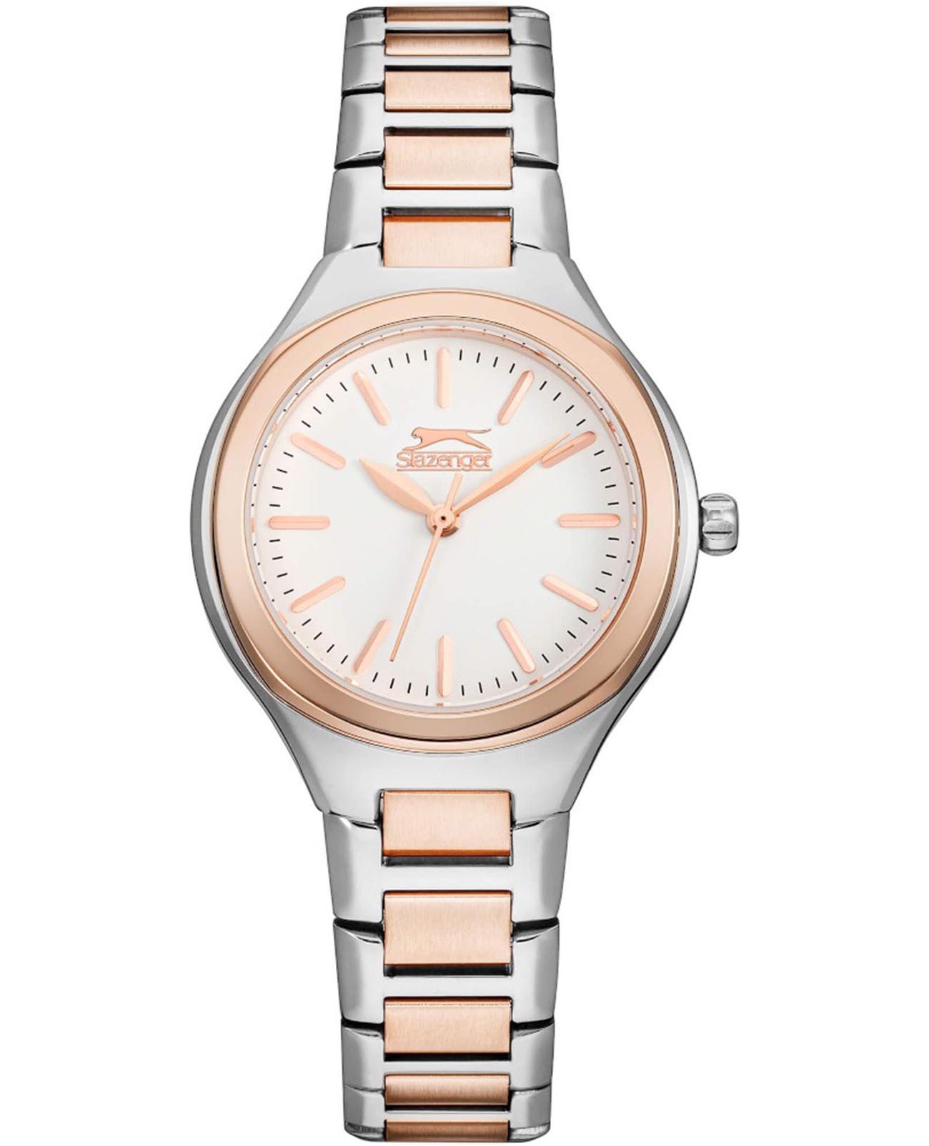 Часы Slazenger SL.09.2254.3.05 — это стильный и надежный аксессуар, который подчеркнет ваш индивидуальный образ. Корпус и браслет выполнены из инновационного суперметалла — сплава на основе меди с пониженным содержанием цинка и никеля, обладающего особой прочностью и долговечностью благодаря специальной технологии покрытия, а на безельБезельВнешний ободок, закрепляющий стекло. В спортивных часах так называется поворотное кольцо с делениями на циферблате, выполняет роль таймера – замеряет отрезки времени на шкале. Неподвижный безель – элемент декора. Однонаправленно вращающийся безель на дайверских часах позволяет фиксировать моменты погружения и выныривания на поверхность. нанесено розово-золотистое IP-покрытиеIP-покрытиеМетод ионного напыления. Демонстрирует повышенную устойчивость к истиранию, окислению и химическим веществам. Под воздействием высокого давления и температуры около 1500°C молекулы металла надёжно соединяются с частицами корпуса часов.. Модель оснащена точным кварцевым механизмом, который обеспечивает стабильную работу и не требует ежедневного завода. Под прочным минеральным стекломМинеральное стеклоМинеральное стекло представляет собой искусственно выращенный минерал кварца. Такое стекло отличается особой устойчивостью к повреждениям и царапинам. Уступает по некоторым качествам сапфировому стеклу. расположен лаконичный белый циферблат, придающий часам элегантный и современный вид. Стальной браслет с частичным розово-золотистым IP-покрытиемIP-покрытиеМетод ионного напыления. Демонстрирует повышенную устойчивость к истиранию, окислению и химическим веществам. Под воздействием высокого давления и температуры около 1500°C молекулы металла надёжно соединяются с частицами корпуса часов. с раскладной застёжкойРаскладная застёжкаТакой тип застёжки используется только на браслетах из металла. Она никогда не раскрывается полностью, происходит разделение на 2 и более частей. Раскладывающая застёжка снизит вероятность потери часов к минимуму. обеспечивает комфортную посадку. Диаметр корпуса составляет 32 мм, толщина — 8 мм, что делает часы аккуратными и удобными для повседневного ношения. Класс водозащиты 3 атмосферы защищает механизм от случайных брызг и капель дождя.