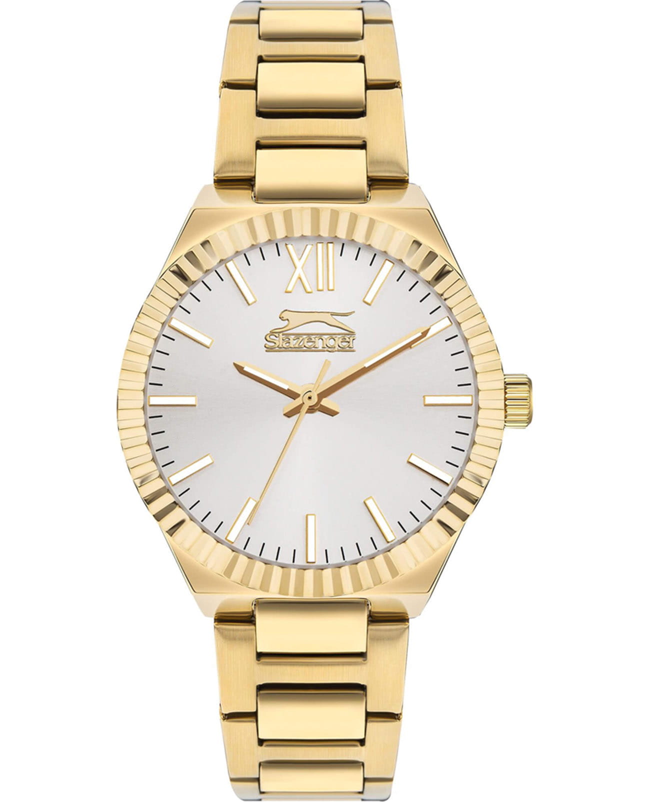 Женские кварцевые часы Slazenger SL.09.2304.3.04 — это элегантный и стильный аксессуар, идеально дополняющий любой образ. Корпус и браслет выполнены из суперметалла с IP-покрытиемIP-покрытиеМетод ионного напыления. Демонстрирует повышенную устойчивость к истиранию, окислению и химическим веществам. Под воздействием высокого давления и температуры около 1500°C молекулы металла надёжно соединяются с частицами корпуса часов., защищён минеральным стекломМинеральное стеклоМинеральное стекло представляет собой искусственно выращенный минерал кварца. Такое стекло отличается особой устойчивостью к повреждениям и царапинам. Уступает по некоторым качествам сапфировому стеклу.. Циферблат бежевого цвета оформлен в классическом стиле, стрелки оснащены люминесцентным покрытиемЛюминесцентное покрытиеПозволяет считывать показания времени в темноте. Производители наносят на стрелки, часовые индексы, безель или поверхность циферблата светонакопительный состав, дающий холодное свечение., обеспечивающим хорошую читаемость в темноте. Браслет из суперметалла фиксируется на раскладной застёжкеРаскладная застёжкаТакой тип застёжки используется только на браслетах из металла. Она никогда не раскрывается полностью, происходит разделение на 2 и более частей. Раскладывающая застёжка снизит вероятность потери часов к минимуму., обеспечивая надёжность и комфорт ношения. Водонепроницаемость 30 м позволяет использовать часы в повседневных условиях, защищая от случайных брызг и капель дождя. Модель сочетает в себе лёгкость, прочность и изысканный внешний вид.