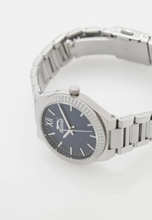 Женские кварцевые часы Slazenger SL.09.2304.3.05 — это элегантный и стильный аксессуар, идеально дополняющий любой образ. Корпус и браслет выполнены из суперметалла, защищён минеральным стекломМинеральное стеклоМинеральное стекло представляет собой искусственно выращенный минерал кварца. Такое стекло отличается особой устойчивостью к повреждениям и царапинам. Уступает по некоторым качествам сапфировому стеклу.. Циферблат синего цвета оформлен в классическом стиле, стрелки оснащены люминесцентным покрытиемЛюминесцентное покрытиеПозволяет считывать показания времени в темноте. Производители наносят на стрелки, часовые индексы, безель или поверхность циферблата светонакопительный состав, дающий холодное свечение., обеспечивающим хорошую читаемость в темноте. Браслет из суперметалла фиксируется на раскладной застёжкеРаскладная застёжкаТакой тип застёжки используется только на браслетах из металла. Она никогда не раскрывается полностью, происходит разделение на 2 и более частей. Раскладывающая застёжка снизит вероятность потери часов к минимуму., обеспечивая надёжность и комфорт ношения. Водонепроницаемость 30 м позволяет использовать часы в повседневных условиях, защищая от случайных брызг и капель дождя. Модель сочетает в себе лёгкость, прочность и изысканный внешний вид.