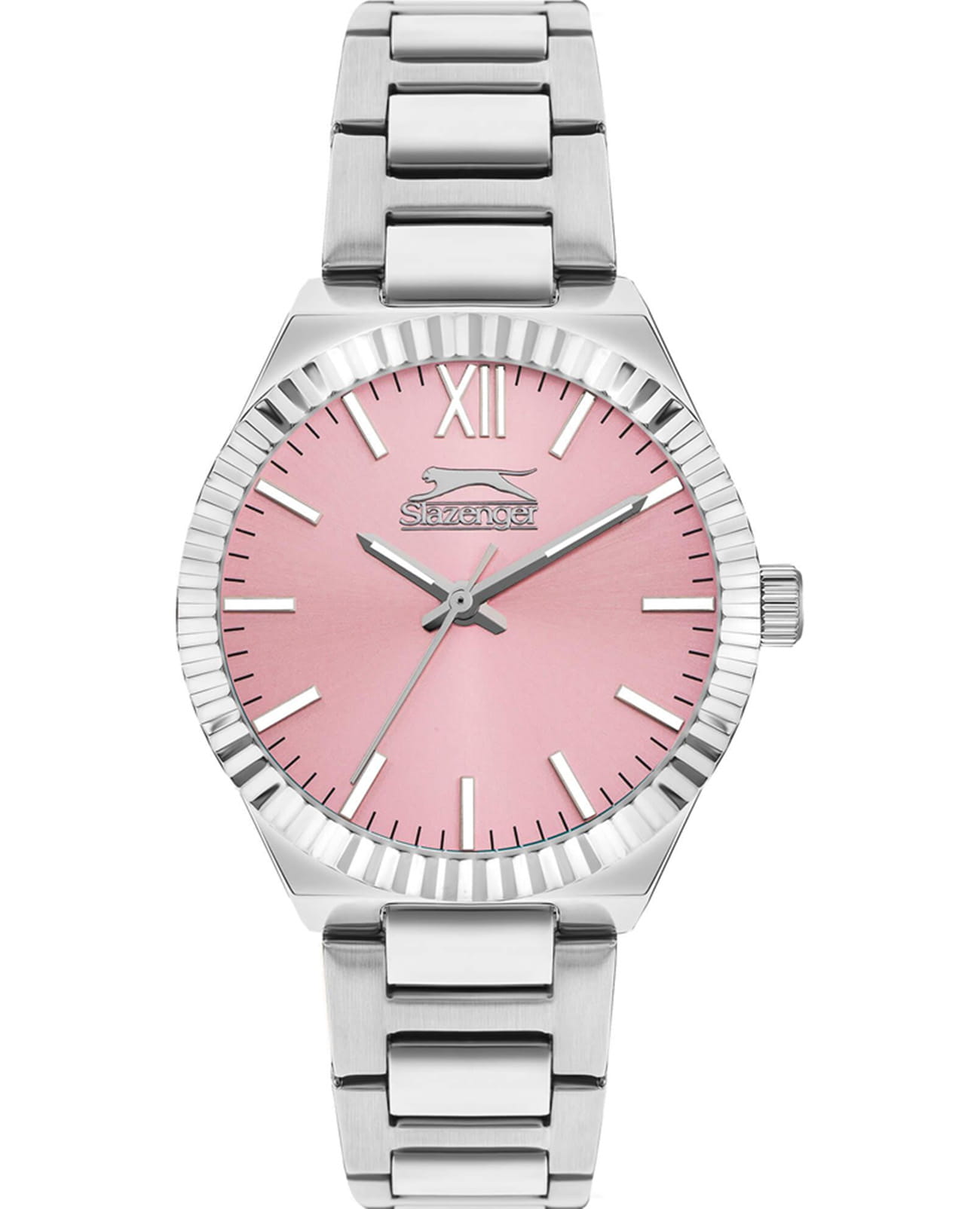 Женские кварцевые часы Slazenger SL.09.2304.3.06 — это элегантный и стильный аксессуар, идеально дополняющий любой образ. Корпус и браслет выполнены из суперметалла, защищён минеральным стекломМинеральное стеклоМинеральное стекло представляет собой искусственно выращенный минерал кварца. Такое стекло отличается особой устойчивостью к повреждениям и царапинам. Уступает по некоторым качествам сапфировому стеклу.. Циферблат розового цвета оформлен в классическом стиле, стрелки оснащены люминесцентным покрытиемЛюминесцентное покрытиеПозволяет считывать показания времени в темноте. Производители наносят на стрелки, часовые индексы, безель или поверхность циферблата светонакопительный состав, дающий холодное свечение., обеспечивающим хорошую читаемость в темноте. Браслет из суперметалла фиксируется на раскладной застёжкеРаскладная застёжкаТакой тип застёжки используется только на браслетах из металла. Она никогда не раскрывается полностью, происходит разделение на 2 и более частей. Раскладывающая застёжка снизит вероятность потери часов к минимуму., обеспечивая надёжность и комфорт ношения. Водонепроницаемость 30 м позволяет использовать часы в повседневных условиях, защищая от случайных брызг и капель дождя. Модель сочетает в себе лёгкость, прочность и изысканный внешний вид.