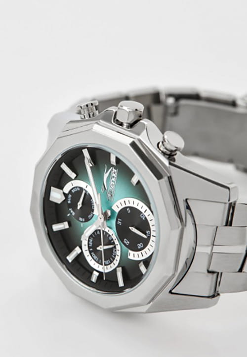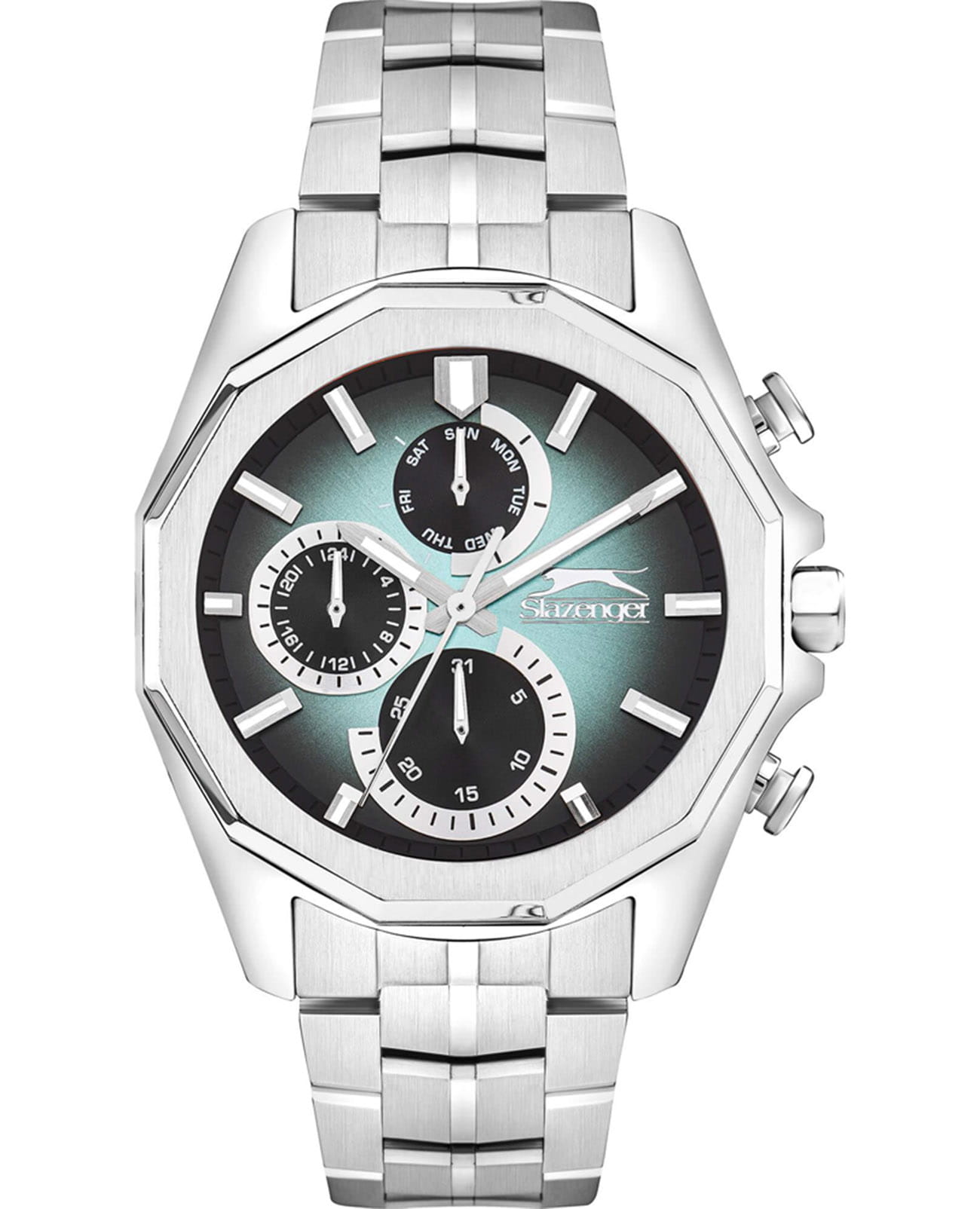Мужские кварцевые часы Slazenger SL.09.2312.2.06 — это выразительный и функциональный аксессуар, сочетающий прочность, стиль и насыщенную комплектацию. Корпус выполнен из суперметалла, защищён минеральным стекломМинеральное стеклоМинеральное стекло представляет собой искусственно выращенный минерал кварца. Такое стекло отличается особой устойчивостью к повреждениям и царапинам. Уступает по некоторым качествам сапфировому стеклу.. Циферблат чёрно-голубого цвета оформлен с вынесенными малыми циферблатами для индикации дня недели, даты и времени в 24-часовом формате. Стрелки и метки оснащены люминесцентным покрытиемЛюминесцентное покрытиеПозволяет считывать показания времени в темноте. Производители наносят на стрелки, часовые индексы, безель или поверхность циферблата светонакопительный состав, дающий холодное свечение., обеспечивающим хорошую читаемость в темноте. Заводная головка снабжена защитой, а задняя крышка — завинчивающаяся, что повышает надёжность конструкции. Браслет из суперметалла фиксируется на раскладной застёжкеРаскладная застёжкаТакой тип застёжки используется только на браслетах из металла. Она никогда не раскрывается полностью, происходит разделение на 2 и более частей. Раскладывающая застёжка снизит вероятность потери часов к минимуму., обеспечивая удобство и безопасность ношения. Водонепроницаемость 50 м позволяет использовать часы в повседневных условиях, защищая от случайных брызг и капель дождя. Модель подчёркивает индивидуальность владельца и идеально подходит как для повседневного, так и для делового образа.