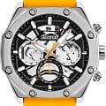 Мужские кварцевые часы Slazenger SL.09.2319.2.06 - это выразительный и функциональный аксессуар, сочетающий стиль, технологичность и насыщенную комплектацию. Корпус выполнен из суперметалла. Циферблат защищён минеральным стекломМинеральное стеклоМинеральное стекло представляет собой искусственно выращенный минерал кварца. Такое стекло отличается особой устойчивостью к повреждениям и царапинам. Уступает по некоторым качествам сапфировому стеклу., частично скелетонизирован, что позволяет наблюдать за работой механизма. Часы оснащены вынесенными малыми циферблатами для индикации дня недели, даты и времени в 24-часовом формате. Стрелки и метки оснащены люминесцентным покрытиемЛюминесцентное покрытиеПозволяет считывать показания времени в темноте. Производители наносят на стрелки, часовые индексы, безель или поверхность циферблата светонакопительный состав, дающий холодное свечение., обеспечивающим хорошую читаемость в темноте. Удобный силиконовый ремешок жёлтого цвета фиксируется на классической пряжке. Водонепроницаемость 50 м позволяет использовать часы в повседневных условиях, защищая от случайных брызг и капель дождя. Модель подчёркивает индивидуальность владельца и идеально подходит как для повседневного, так и для спортивного образа.
