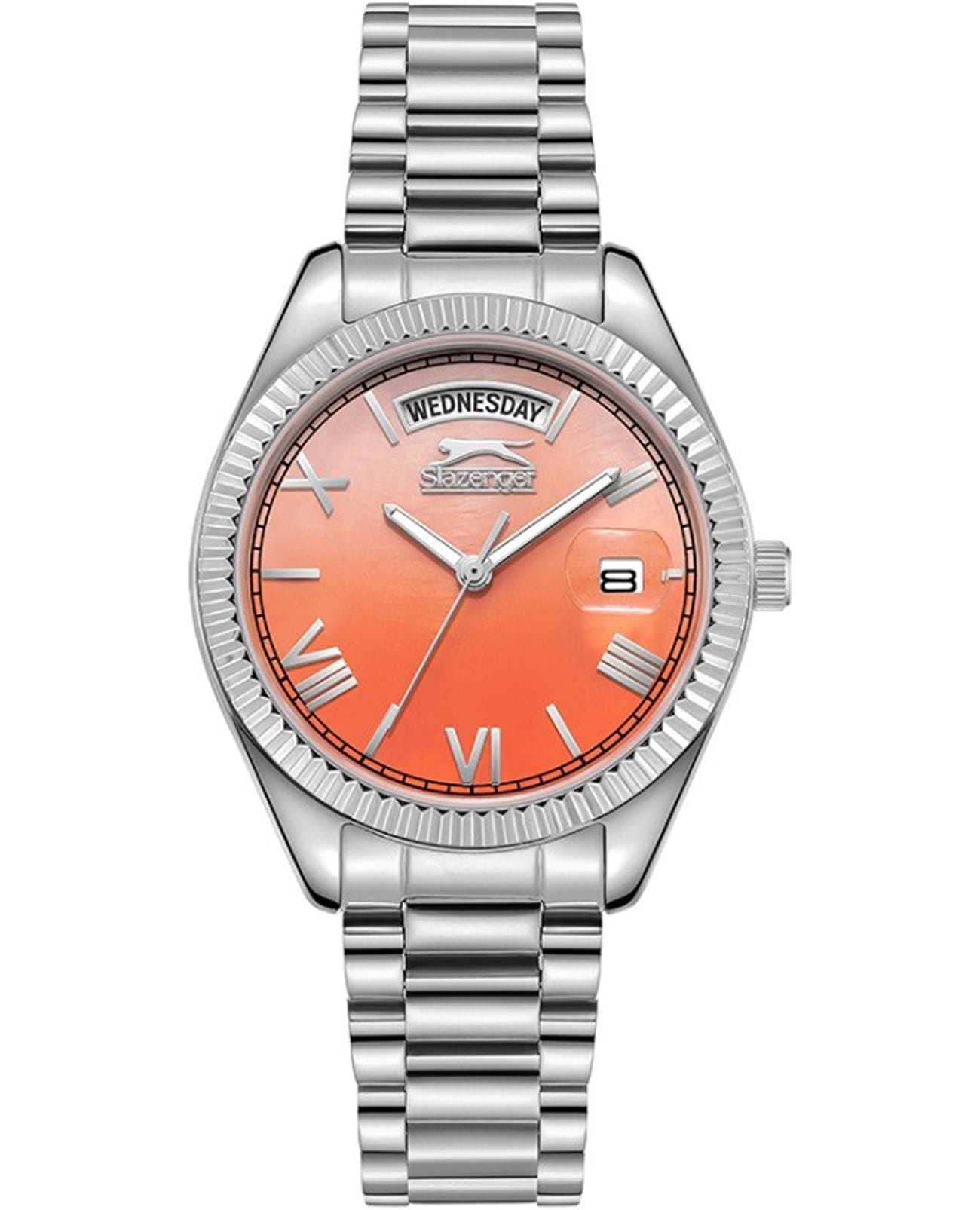 Женские элегантные наручные часы Slazenger SL.09.2338.4.06 сочетают в себе современный стиль и функциональность. Стильный корпус выполнен из суперметалла, придающий модели дополнительную прочность и элегантный внешний вид. Изысканный циферблат защищён минеральным стекломМинеральное стеклоМинеральное стекло представляет собой искусственно выращенный минерал кварца. Такое стекло отличается особой устойчивостью к повреждениям и царапинам. Уступает по некоторым качествам сапфировому стеклу., устойчивым к царапинам и повреждениям. Водонепроницаемость 3 АТМ позволяет использовать часы в повседневных условиях — при мытье рук или под лёгким дождём. Cтрелки покрыты люминесцентным покрытиемЛюминесцентное покрытиеПозволяет считывать показания времени в темноте. Производители наносят на стрелки, часовые индексы, безель или поверхность циферблата светонакопительный состав, дающий холодное свечение. для читаемости в условиях недостаточного освещения. Браслет из суперметалла и с раскладной застёжкойРаскладная застёжкаТакой тип застёжки используется только на браслетах из металла. Она никогда не раскрывается полностью, происходит разделение на 2 и более частей. Раскладывающая застёжка снизит вероятность потери часов к минимуму., обеспечивающий надёжную фиксацию и комфорт при ношении. Окошко даты находится в положении 3 часа. Эта модель идеально подходит для женщин, ценящих стиль, функциональность и надёжность в одном аксессуаре.