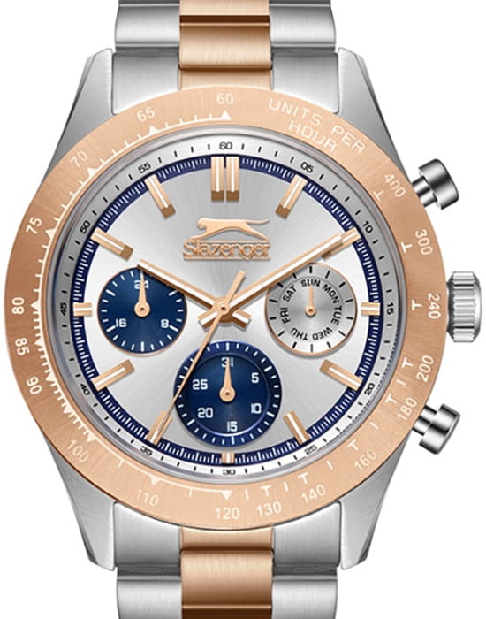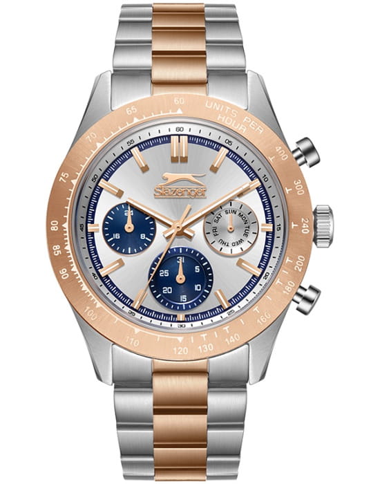 Slazenger SL.09.2358.2.03 — стильные мужские часы, сочетающие современный дизайн и функциональность. Корпус выполнен из суперметалла, а безельБезельВнешний ободок, закрепляющий стекло. В спортивных часах так называется поворотное кольцо с делениями на циферблате, выполняет роль таймера – замеряет отрезки времени на шкале. Неподвижный безель – элемент декора. Однонаправленно вращающийся безель на дайверских часах позволяет фиксировать моменты погружения и выныривания на поверхность. покрыт PVDPVDУльтратонкое покрытие наносится в технике вакуумного напыления, сочетает в себе нитрид титана особой прочности со слоем золота или оксида хрома. Несёт в себе декоративную или защитную функцию.-покрытием, придающим модели современный и элегантный вид. Минеральное стеклоМинеральное стеклоМинеральное стекло представляет собой искусственно выращенный минерал кварца. Такое стекло отличается особой устойчивостью к повреждениям и царапинам. Уступает по некоторым качествам сапфировому стеклу. защищает циферблат от царапин и гарантирует превосходную читаемость. Циферблат с контрастными метками и стрелками обеспечивает отличную видимость в любых условиях. Браслет из суперметалла с покрыт PVDPVDУльтратонкое покрытие наносится в технике вакуумного напыления, сочетает в себе нитрид титана особой прочности со слоем золота или оксида хрома. Несёт в себе декоративную или защитную функцию.-покрытием, обеспечивает комфортное ношение и надёжную фиксацию на запястье. Функциональность дополняется индикацией даты, дня недели и 24-часовым форматом времени. Водонепроницаемость 50 метров делает модель устойчивой к случайным брызгам, идеально подходя для повседневного использования.