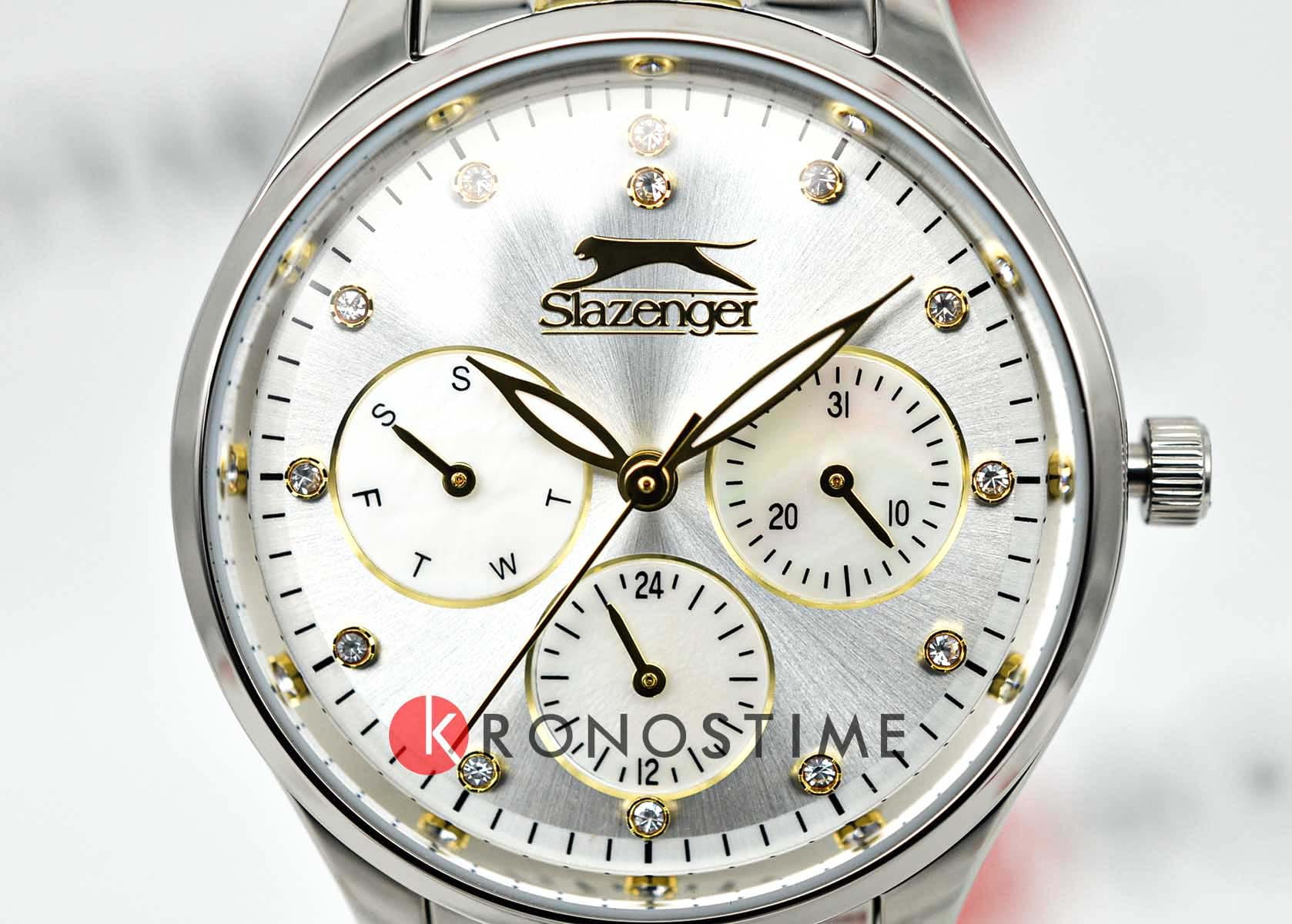 Женские кварцевые часы Slazenger — это элегантный и функциональный аксессуар. Корпус диаметром 34 мм и толщиной 11 мм выполнен из суперметалла. Циферблат серебристого цвета оформлен индексами и стрелками, украшен фианитами. Циферблат защищён минеральным стекломМинеральное стеклоМинеральное стекло представляет собой искусственно выращенный минерал кварца. Такое стекло отличается особой устойчивостью к повреждениям и царапинам. Уступает по некоторым качествам сапфировому стеклу.. Механизм — кварцевый. Часы оснащены индикацией дня недели, даты и 12/24-часового формата времени. Часы оснащены браслетом из суперметалла с IP-покрытиемIP-покрытиеМетод ионного напыления. Демонстрирует повышенную устойчивость к истиранию, окислению и химическим веществам. Под воздействием высокого давления и температуры около 1500°C молекулы металла надёжно соединяются с частицами корпуса часов. и раскладной застёжкойРаскладная застёжкаТакой тип застёжки используется только на браслетах из металла. Она никогда не раскрывается полностью, происходит разделение на 2 и более частей. Раскладывающая застёжка снизит вероятность потери часов к минимуму.. Водонепроницаемость 50 м позволяет использовать часы в повседневных условиях. Гарантия — 12 месяцев. Идеальный выбор для тех, кто ценит стиль, функциональность и качество.