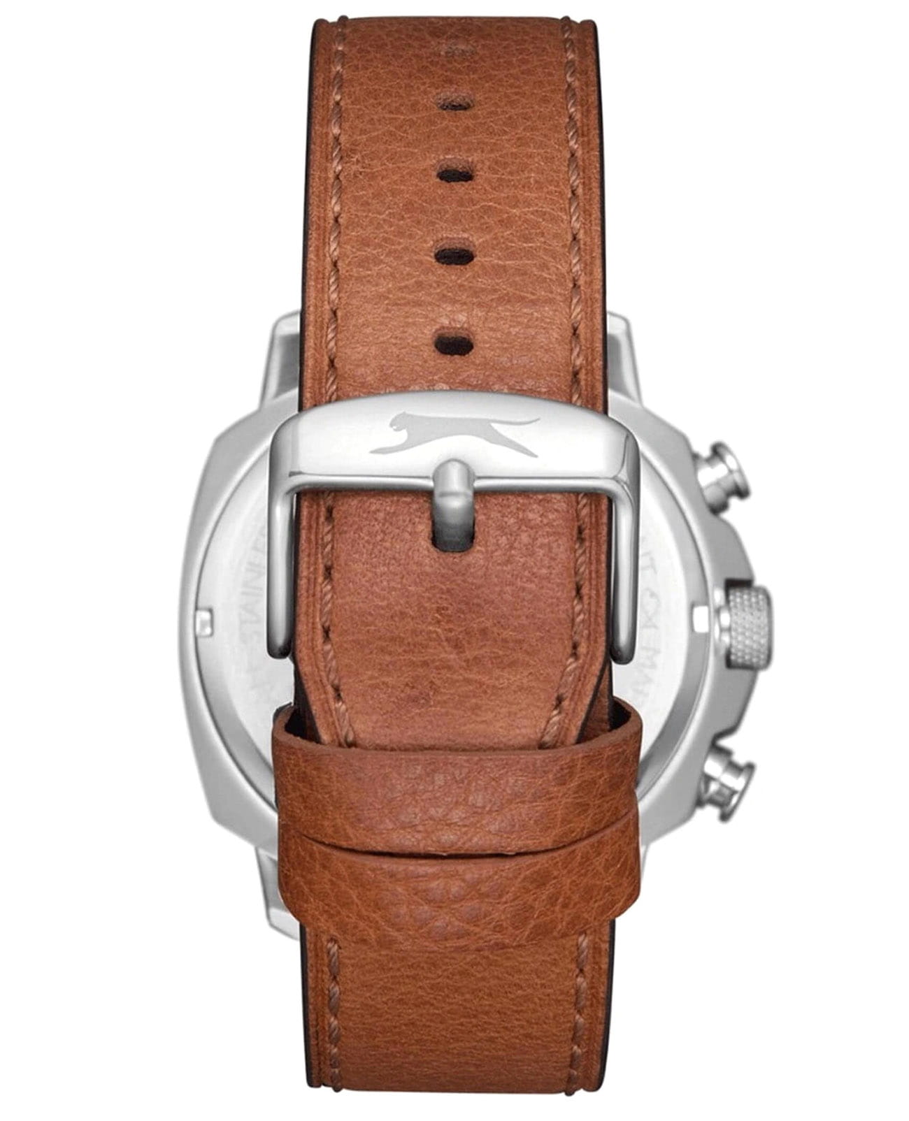Мужские кварцевые часы Slazenger — это выразительный и функциональный аксессуар. Корпус диаметром 43 мм и толщиной 14 мм выполнен из нержавеющей стали 316L. Циферблат зелёного цвета оформлен индексами и стрелками. Циферблат защищён минеральным стекломМинеральное стеклоМинеральное стекло представляет собой искусственно выращенный минерал кварца. Такое стекло отличается особой устойчивостью к повреждениям и царапинам. Уступает по некоторым качествам сапфировому стеклу.. Механизм — кварцевый. Часы оснащены индикацией дня недели, даты, 12/24-часового формата времени и функцией второго часового пояса (GMT)Второй часовой поясФункция, позволяющая отображать время двух часовых поясов одновременно.. Окошко даты расположено между 4 и 5 часами. Часы оснащены кожаным ремешком со стандартной застёжкой. Водонепроницаемость 100 м позволяет использовать часы для плавания и повседневного ношения. Гарантия — 12 месяцев. Идеальный выбор для тех, кто ценит стиль, функциональность и качество.