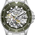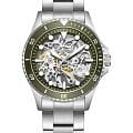 Мужские механические часы с автоподзаводом Slazenger — это выразительный и функциональный аксессуар. Корпус диаметром 42 мм и толщиной 15 мм выполнен из нержавеющей стали 316L. БезельБезельВнешний ободок, закрепляющий стекло. В спортивных часах так называется поворотное кольцо с делениями на циферблате, выполняет роль таймера – замеряет отрезки времени на шкале. Неподвижный безель – элемент декора. Однонаправленно вращающийся безель на дайверских часах позволяет фиксировать моменты погружения и выныривания на поверхность. — однонаправленный вращающийся. Циферблат зелёного цвета частично скелетонизирован, что позволяет наблюдать за работой механизма. Циферблат защищён минеральным стекломМинеральное стеклоМинеральное стекло представляет собой искусственно выращенный минерал кварца. Такое стекло отличается особой устойчивостью к повреждениям и царапинам. Уступает по некоторым качествам сапфировому стеклу.. Механизм — автоматический калибр. Прозрачная задняя крышка открывает вид на декорированный механизм. Стрелки и метки с люминесцентным покрытиемЛюминесцентное покрытиеПозволяет считывать показания времени в темноте. Производители наносят на стрелки, часовые индексы, безель или поверхность циферблата светонакопительный состав, дающий холодное свечение., обеспечивающим хорошую читаемость в темноте. Часы оснащены стальным браслетом с раскладной застёжкойРаскладная застёжкаТакой тип застёжки используется только на браслетах из металла. Она никогда не раскрывается полностью, происходит разделение на 2 и более частей. Раскладывающая застёжка снизит вероятность потери часов к минимуму.. Водонепроницаемость 100 м позволяет использовать часы для плавания и повседневного ношения. Гарантия — 12 месяцев. Идеальный выбор для тех, кто ценит стиль, технологичность и качество.
