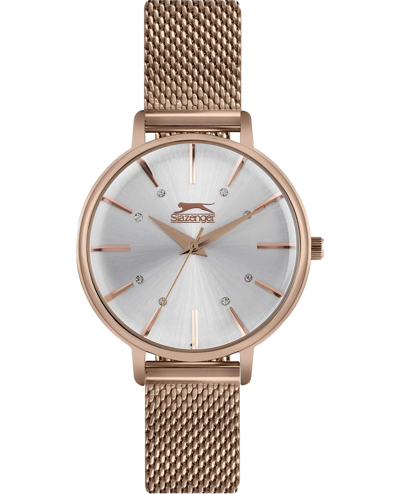 Женские кварцевые часы Slazenger — изящный аксессуар, сочетающий утончённый дизайн и современные материалы. Корпус диаметром 34 мм и толщиной 8,5 мм выполнен из суперметалла с IP-покрытиемIP-покрытиеМетод ионного напыления. Демонстрирует повышенную устойчивость к истиранию, окислению и химическим веществам. Под воздействием высокого давления и температуры около 1500°C молекулы металла надёжно соединяются с частицами корпуса часов.. Циферблат серебристого цвета украшен фианитами, придающими изделию элегантное сияние. Циферблат защищён минеральным стекломМинеральное стеклоМинеральное стекло представляет собой искусственно выращенный минерал кварца. Такое стекло отличается особой устойчивостью к повреждениям и царапинам. Уступает по некоторым качествам сапфировому стеклу.. Механизм — кварцевый. Часы оснащены браслетом миланского плетения из суперметалла с раскладной застёжкойРаскладная застёжкаТакой тип застёжки используется только на браслетах из металла. Она никогда не раскрывается полностью, происходит разделение на 2 и более частей. Раскладывающая застёжка снизит вероятность потери часов к минимуму.. Водонепроницаемость 30 м позволяет использовать часы в повседневных условиях. Стильный выбор для тех, кто ценит детали и женственность.