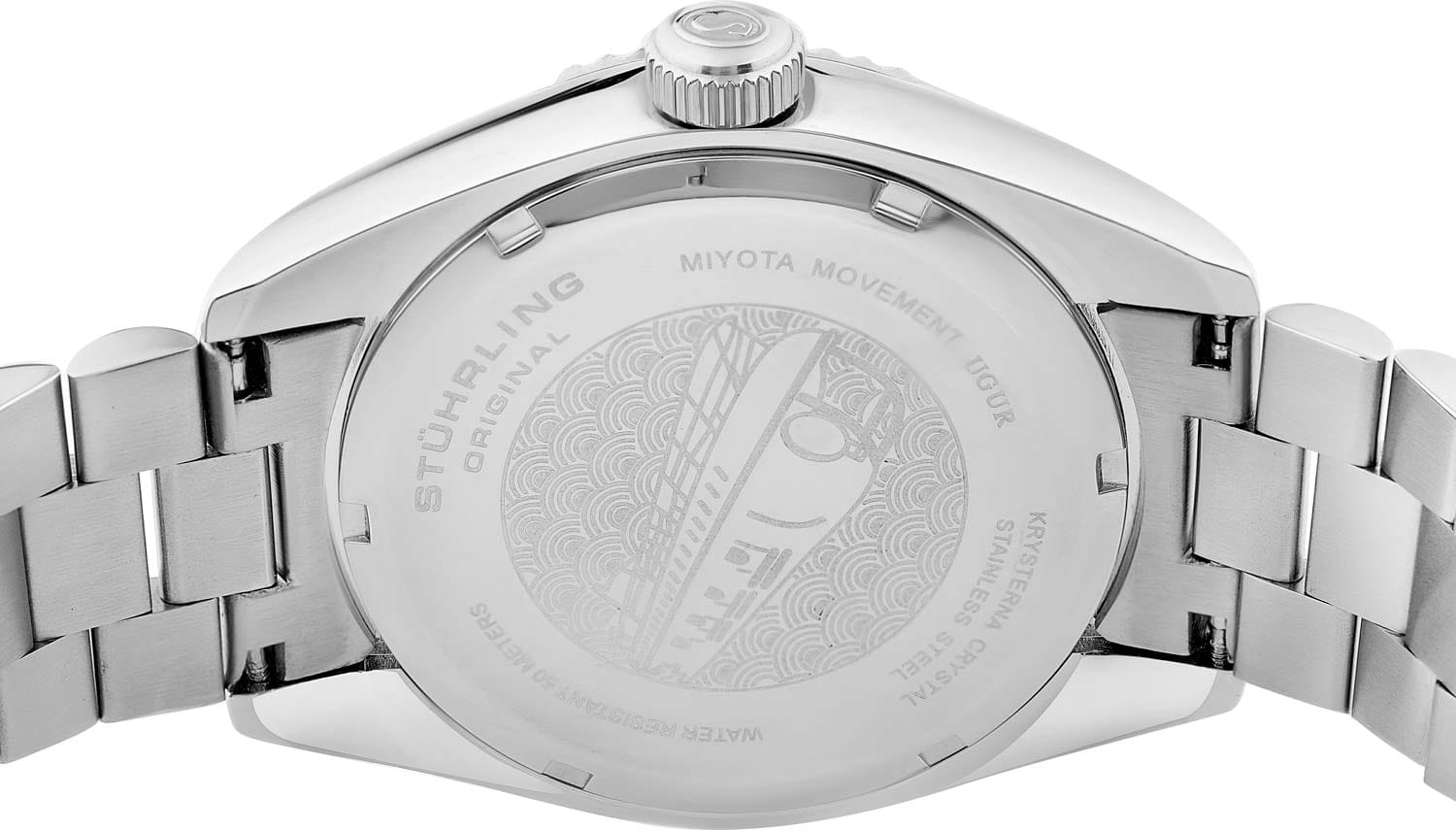 Stuhrling 3935.3 — элегантные мужские часы, объединяющие строгую классику и современную функциональность. Корпус из нержавеющей стали создают ощущение монолитной надёжности, а глубокий циферблат придаёт модели выразительность и характер. Стальной браслет на раскладной застёжкеРаскладная застёжкаТакой тип застёжки используется только на браслетах из металла. Она никогда не раскрывается полностью, происходит разделение на 2 и более частей. Раскладывающая застёжка снизит вероятность потери часов к минимуму. обеспечивает комфорт. Крупные метки и стрелки с люминесцентным покрытиемЛюминесцентное покрытиеПозволяет считывать показания времени в темноте. Производители наносят на стрелки, часовые индексы, безель или поверхность циферблата светонакопительный состав, дающий холодное свечение. обеспечивают идеальную читаемость даже в темноте. На позиции «3 часов» расположено аккуратное окно даты, подчёркивающее симметрию дизайна. Прочное стекло Krysterna защищает циферблат от царапин, а надёжный кварцевый механизм гарантирует стабильную точность. Stuhrling — выбор уверенного мужчины, ценящего сочетание функциональности, лаконичного дизайна и безупречной отделки.