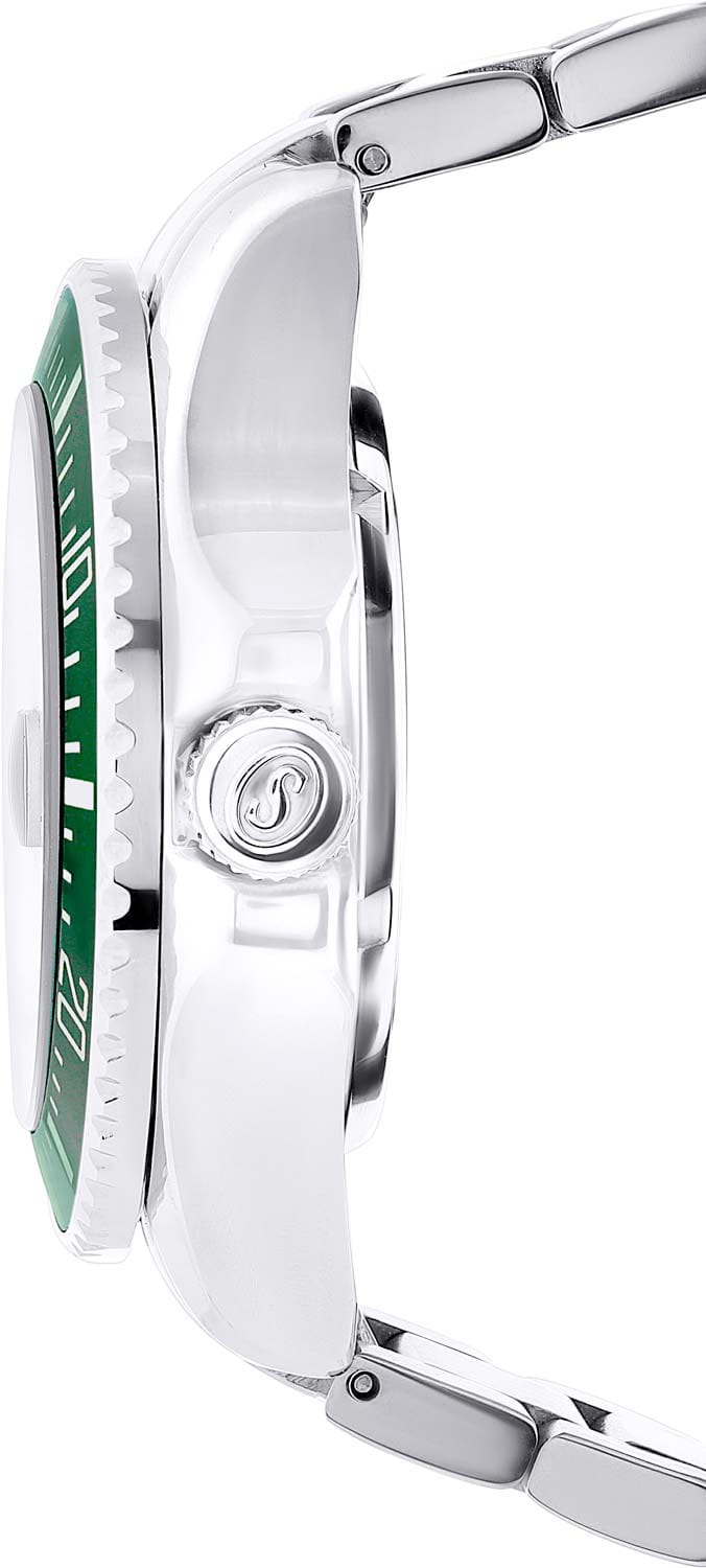 Stuhrling 4048.2 — стильные мужские часы в духе морского дайверского дизайна. Глубокий циферблат с радиальным переливом и крупные метки/стрелки с люминесцентным покрытиемЛюминесцентное покрытиеПозволяет считывать показания времени в темноте. Производители наносят на стрелки, часовые индексы, безель или поверхность циферблата светонакопительный состав, дающий холодное свечение. обеспечивают отличную читаемость, вращающийся безельБезельВнешний ободок, закрепляющий стекло. В спортивных часах так называется поворотное кольцо с делениями на циферблате, выполняет роль таймера – замеряет отрезки времени на шкале. Неподвижный безель – элемент декора. Однонаправленно вращающийся безель на дайверских часах позволяет фиксировать моменты погружения и выныривания на поверхность. с PVD-покрытиемPVDУльтратонкое покрытие наносится в технике вакуумного напыления, сочетает в себе нитрид титана особой прочности со слоем золота или оксида хрома. Несёт в себе декоративную или защитную функцию. подчёркивает спортивный характер. Браслет из нержавеющей стали, удобная раскладная застёжкаРаскладная застёжкаТакой тип застёжки используется только на браслетах из металла. Она никогда не раскрывается полностью, происходит разделение на 2 и более частей. Раскладывающая застёжка снизит вероятность потери часов к минимуму. фиксирует часы на запястье. Циферблат прикрыт стеклом KrysternaKrysternaKrysterna — инновационное стекло для наручных часов. Благодаря уникальной структуре, Krysterna объединяет ключевые преимущества двух материалов: твердость сапфира, защищающую от царапин, и гибкость минерального стекла, обеспечивающую устойчивость к деформациям. Такая комбинация делает его идеальным решением для часов, подверженных экстремальным нагрузкам, сохраняя при этом оптическую прозрачность. с высокой стойкостью к царапинам. Надёжный спутник для повседневной настроения и активного отдыха.