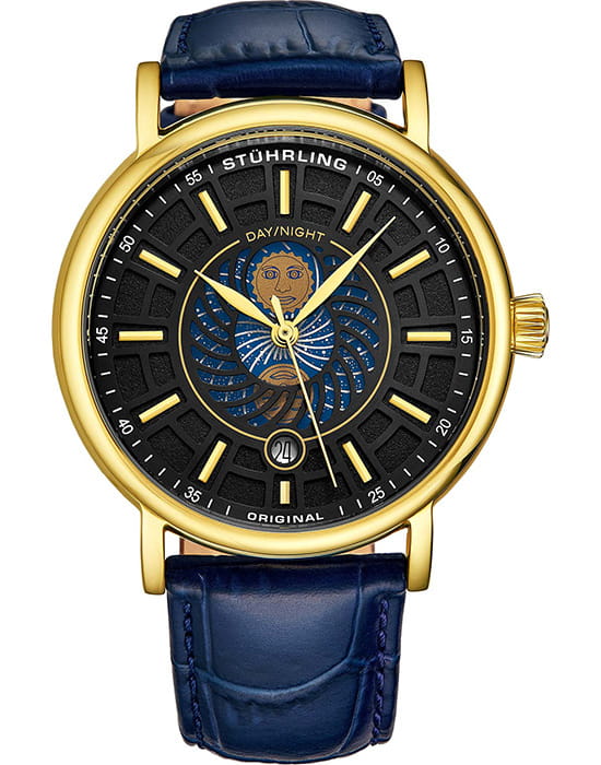 Stuhrling 899.04 — выразительные мужские часы с уникальным дизайнерским решением. Глубокий циферблат с геометрическим узором придаёт модели эффектный и современный вид. Корпус из нержавеющей стали с PVD-покрытиемPVDУльтратонкое покрытие наносится в технике вакуумного напыления, сочетает в себе нитрид титана особой прочности со слоем золота или оксида хрома. Несёт в себе декоративную или защитную функцию. отличается аккуратной полировкой и плавными формами, подчёркивающими элегантность классического стиля. Прочное стекло KrysternaKrysternaKrysterna — инновационное стекло для наручных часов. Благодаря уникальной структуре, Krysterna объединяет ключевые преимущества двух материалов: твердость сапфира, защищающую от царапин, и гибкость минерального стекла, обеспечивающую устойчивость к деформациям. Такая комбинация делает его идеальным решением для часов, подверженных экстремальным нагрузкам, сохраняя при этом оптическую прозрачность. защищает поверхность от царапин, сохраняя прозрачность и глубину цвета. Ремень из натуральной кожи на стандартной застежке, обеспечивает комфорт и надёжность при ежедневном ношении. Stuhrling — это гармония механической точности и выразительного дизайна, созданная для мужчин, ценящих стиль и совершенство деталей.