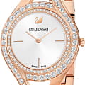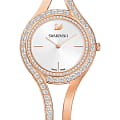Женские часы Swarovski Eternal 5377576 – это оригинальные часы оттенка розового золота, простые и современные, изумительно сверкают 112 кристаллами в фирменной закрепке Swarovski. Часы с белым циферблатом и браслетом из нержавеющей стали с PVDPVDУльтратонкое покрытие наносится в технике вакуумного напыления, сочетает в себе нитрид титана особой прочности со слоем золота или оксида хрома. Несёт в себе декоративную или защитную функцию. покрытием оттенка розового золота придадут любому образу современной женственной элегантности. Надежное минеральное стеклоМинеральное стеклоМинеральное стекло представляет собой искусственно выращенный минерал кварца. Такое стекло отличается особой устойчивостью к повреждениям и царапинам. Уступает по некоторым качествам сапфировому стеклу. защищает часы от царапин и долго сохраняет первоначальный внешний вид. Водозащита 50 метров делает часы практичными для повседневного использования.