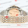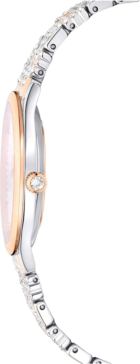 Часы Swarovski 5649987– это воплощение изысканного дизайна и функциональности, созданное для тех, кто ценит красоту и точность. Серебристый круглый корпус из нержавеющей стали оснащен безелемБезельВнешний ободок, закрепляющий стекло. В спортивных часах так называется поворотное кольцо с делениями на циферблате, выполняет роль таймера – замеряет отрезки времени на шкале. Неподвижный безель – элемент декора. Однонаправленно вращающийся безель на дайверских часах позволяет фиксировать моменты погружения и выныривания на поверхность. с PVDPVDУльтратонкое покрытие наносится в технике вакуумного напыления, сочетает в себе нитрид титана особой прочности со слоем золота или оксида хрома. Несёт в себе декоративную или защитную функцию. покрытием, украшенным паве из тридцати мерцающих кристаллов. Под минеральным стекломМинеральное стеклоМинеральное стекло представляет собой искусственно выращенный минерал кварца. Такое стекло отличается особой устойчивостью к повреждениям и царапинам. Уступает по некоторым качествам сапфировому стеклу. открывается серебристый циферблат украшен гильошированным узором и кристаллами для индексных меток. Рифленая заводная головка украшена кристаллом круглой огранки. Стальной браслет с частичным PVDPVDУльтратонкое покрытие наносится в технике вакуумного напыления, сочетает в себе нитрид титана особой прочности со слоем золота или оксида хрома. Несёт в себе декоративную или защитную функцию. покрытием и застежкой «бабочка»Застёжка "бабочка"Такой вид застёжки дополняется предохранителями, помогающими избежать случайного раскрытия браслета. Обладают изящным исполнением. , декорирован кристаллами Swarovski. Водозащита 50WR делает их устойчивыми к влаге, позволяя наслаждаться стильным аксессуаром в любых условиях.