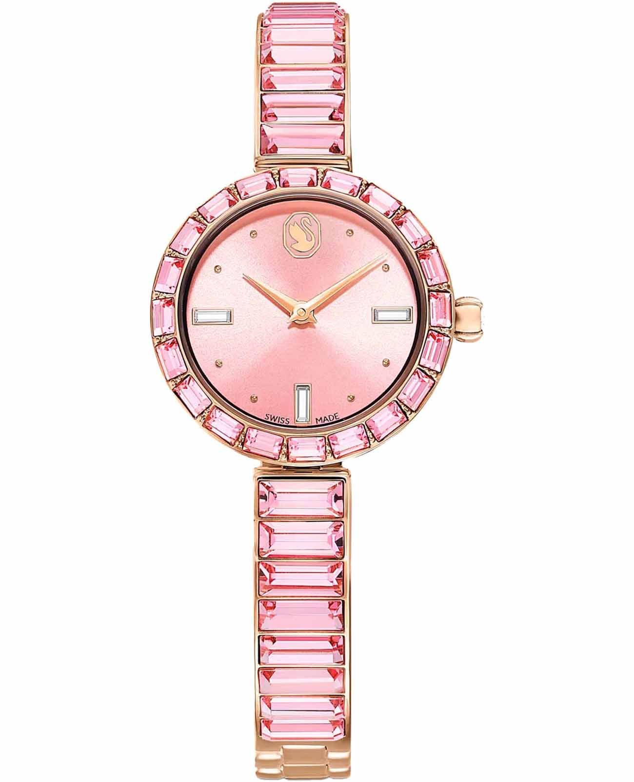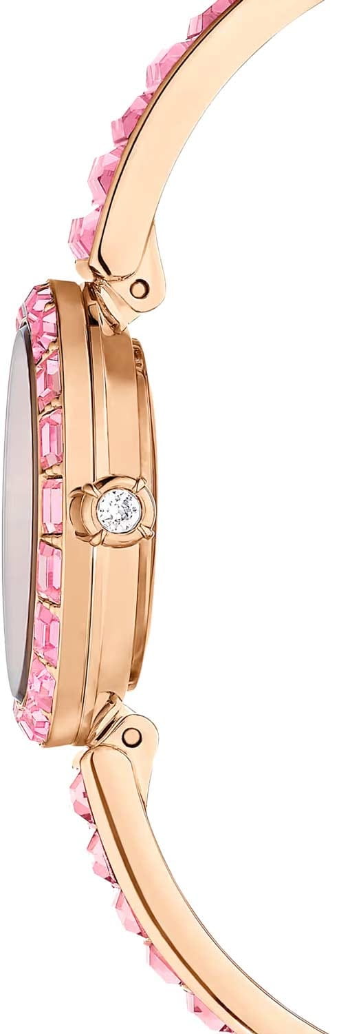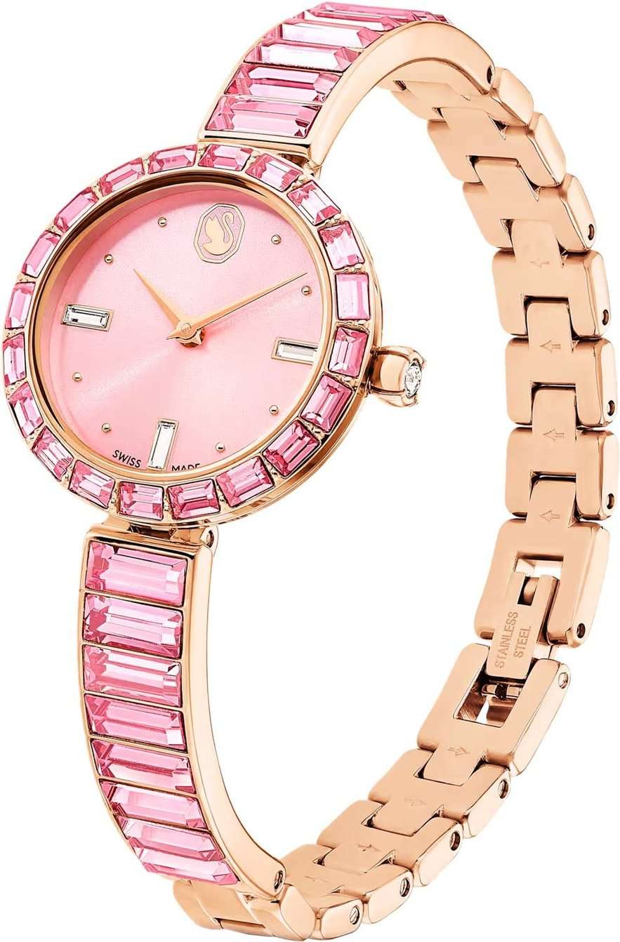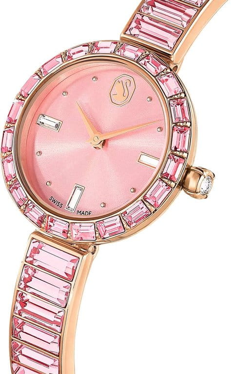 Часы Swarovski 5679890 – это гармоничное сочетание элегантности и функциональности, созданное для ценителей изысканных аксессуаров. Эти швейцарские кварцевые часы заключены в корпус из стали с розовым PVDPVDУльтратонкое покрытие наносится в технике вакуумного напыления, сочетает в себе нитрид титана особой прочности со слоем золота или оксида хрома. Несёт в себе декоративную или защитную функцию.-покрытием, который привлекает внимание своим утонченным стилем. Розовый циферблат, выполненный по технологии Sunray, украшен логотипом Swarovski в виде лебедя на отметке 12 часов, добавляя часам особый шарм. БезельБезельВнешний ободок, закрепляющий стекло. В спортивных часах так называется поворотное кольцо с делениями на циферблате, выполняет роль таймера – замеряет отрезки времени на шкале. Неподвижный безель – элемент декора. Однонаправленно вращающийся безель на дайверских часах позволяет фиксировать моменты погружения и выныривания на поверхность., браслет и циферблат украшены мерцающими кристаллами Swarovski, создающими эффектный блеск и подчеркивающими роскошь изделия. Заводная головка дополнена кристаллом круглой огранки, придающим часам завершенность и изящество. Минеральное стеклоМинеральное стеклоМинеральное стекло представляет собой искусственно выращенный минерал кварца. Такое стекло отличается особой устойчивостью к повреждениям и царапинам. Уступает по некоторым качествам сапфировому стеклу. надежно защищает циферблат, а водозащита 50 WR позволяет не беспокоиться о контакте с водой в повседневных ситуациях. Стальной браслет с розовым PVDPVDУльтратонкое покрытие наносится в технике вакуумного напыления, сочетает в себе нитрид титана особой прочности со слоем золота или оксида хрома. Несёт в себе декоративную или защитную функцию.-покрытием, декорированный кристаллами, обеспечивает комфортное ношение и стильный внешний вид. С диаметром корпуса 25 мм и длиной браслета 16,5 см, эти часы станут изысканным дополнением к любому наряду. Часы Swarovski 5679890 – это не просто аксессуар, а настоящее произведение искусства, способное стать ярким акцентом вашего образа.