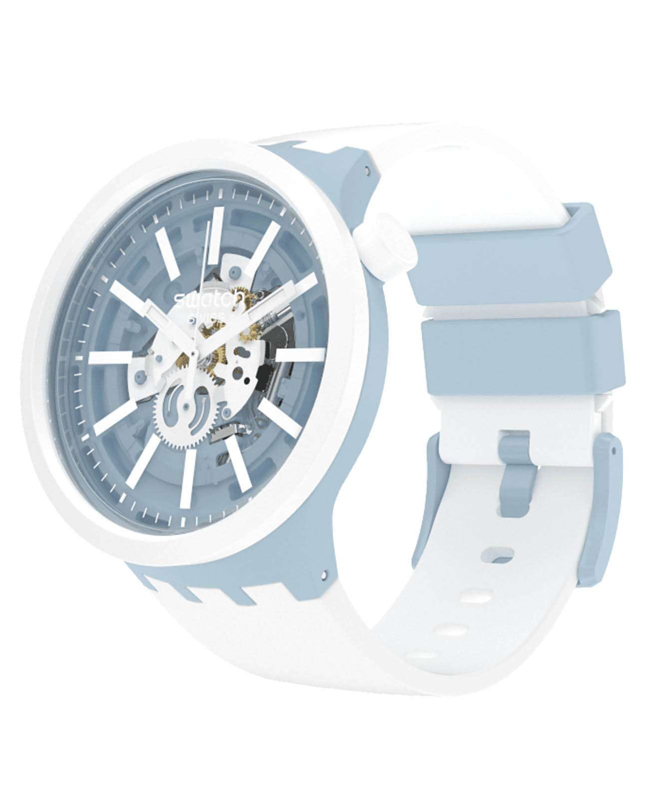 Часы Swatch SB03N103 — это стильный и современный аксессуар для тех, кто ценит лёгкость и комфорт. Часы идеально подойдут как для мужчин, так и для женщин. Центральный элемент этой модели часов — большой корпус со стеклом из био-материала, украшенный 3D-циферблатом с принтами на индексах. Корпус и безельБезельВнешний ободок, закрепляющий стекло. В спортивных часах так называется поворотное кольцо с делениями на циферблате, выполняет роль таймера – замеряет отрезки времени на шкале. Неподвижный безель – элемент декора. Однонаправленно вращающийся безель на дайверских часах позволяет фиксировать моменты погружения и выныривания на поверхность. из биокерамикиБиокерамикаБиокерамика — это материал, который на две трети состоит из керамики, на одну треть — из биопластика. Он сочетает в себе лучшие качества обоих материалов и обладает прочностью и шелковистой на ощупь текстурой., а также силиконовые тренчики подчеркивают белый принт на силиконовом ремешке этих огромных часов. На часовую, минутную стрелки нанесено люминесцентное покрытиеЛюминесцентное покрытиеПозволяет считывать показания времени в темноте. Производители наносят на стрелки, часовые индексы, безель или поверхность циферблата светонакопительный состав, дающий холодное свечение., которое светится в темноте, создавая необычное изображение. Водозащита 30 метров делает часы практичными для повседневного использования. Эти часы подойдут для повседневного ношения и станут ярким акцентом в вашем наряде.
