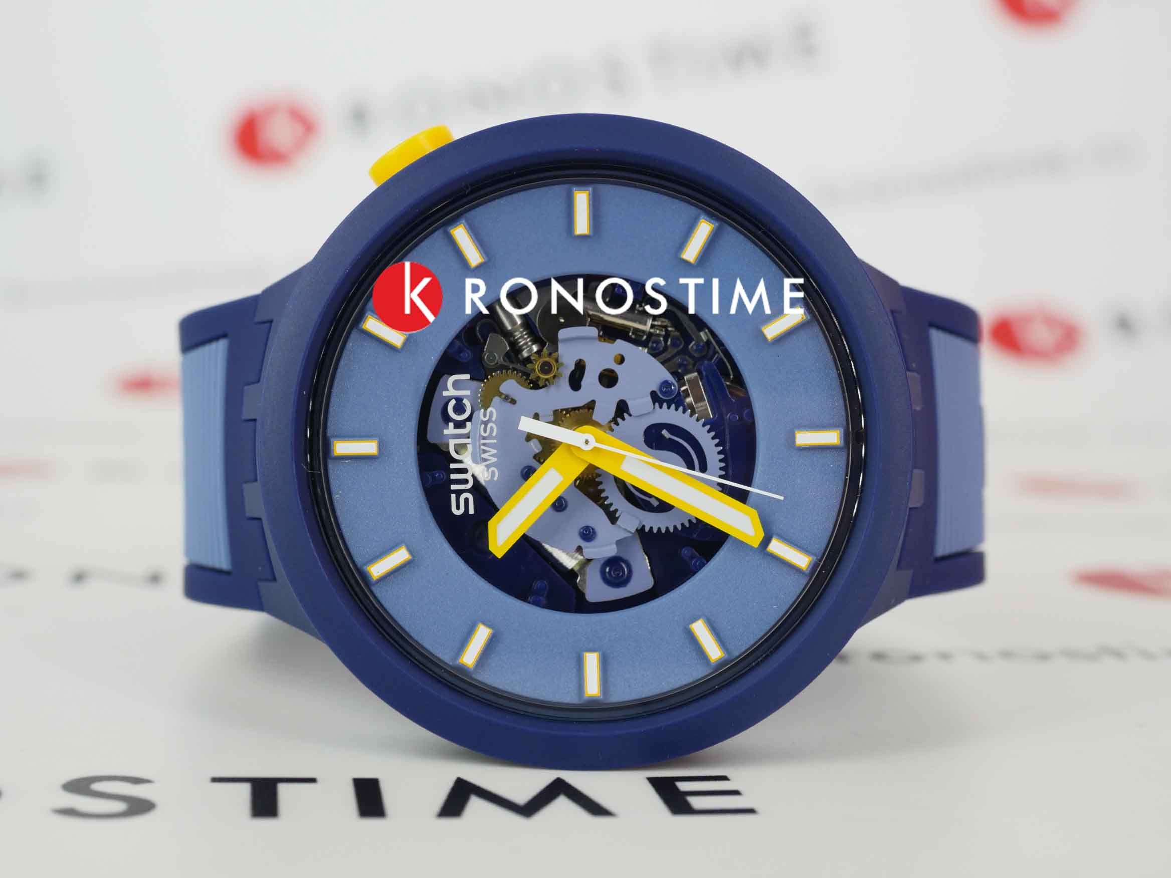 Часы Swatch SB05N117 — это стильный и современный аксессуар для тех, кто ценит лёгкость и комфорт. Часы идеально подойдут как для мужчин, так и для женщин. Эти часы большого размера отличаются светло-голубым открытым циферблатом, 3D-индексами с белым и желтым принтом, светящимися в темноте часовой и минутной стрелками благодаря люминесцентному покрытиюЛюминесцентное покрытиеПозволяет считывать показания времени в темноте. Производители наносят на стрелки, часовые индексы, безель или поверхность циферблата светонакопительный состав, дающий холодное свечение., белой секундной стрелкой и светло-голубыми элементами часового механизма, покрытого стеклом из биоматериала.  Матовый темно-синий корпус из биоматериала в тон дополнен матовым темно-синим ремешком с матовой светло-голубой структурой, матовыми темно-синими и светло-голубыми петлями и матовой темно-синей пряжкой-половинкой. Водозащита 30 метров делает часы практичными для повседневного использования. Эти часы подойдут для повседневного ношения и станут ярким акцентом в вашем наряде.