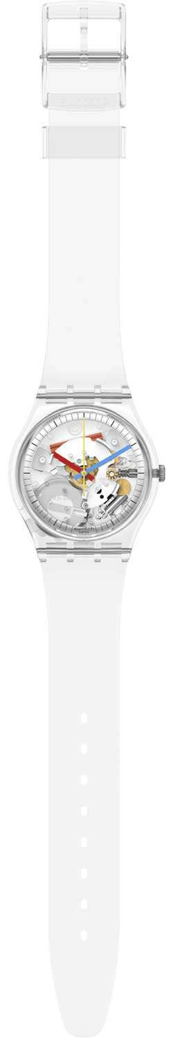 Часы Swatch  SO28K100 — это стильный и современный аксессуар, который идеально подходит для повседневного ношения. Они имеют необычный и привлекательный дизайн, который выделяет их среди других моделей. Корпус часов выполнен из высококачественного прозрачного биоматериала, позволяющего наблюдать механизм часов. Циферблат лаконичный без цифр. Стекло часов изготовлено из прочного хезалита, который устойчив к царапинам и ударам, что гарантирует долговечность изделия.  Внутри часов установлен надежный кварцевый механизм, который обеспечивает точность хода. Эти часы водонепроницаемы до 30 метров, что позволяет не беспокоиться о случайных брызгах или дождевых каплях. Ремешок часов  выполнен из пластика и имеет регулируемую длину, застежка классическая из алюминия. Swatch SO28K100 — это идеальный выбор для тех, кто ценит сочетание стиля, комфорта и функциональности в одном аксессуаре.