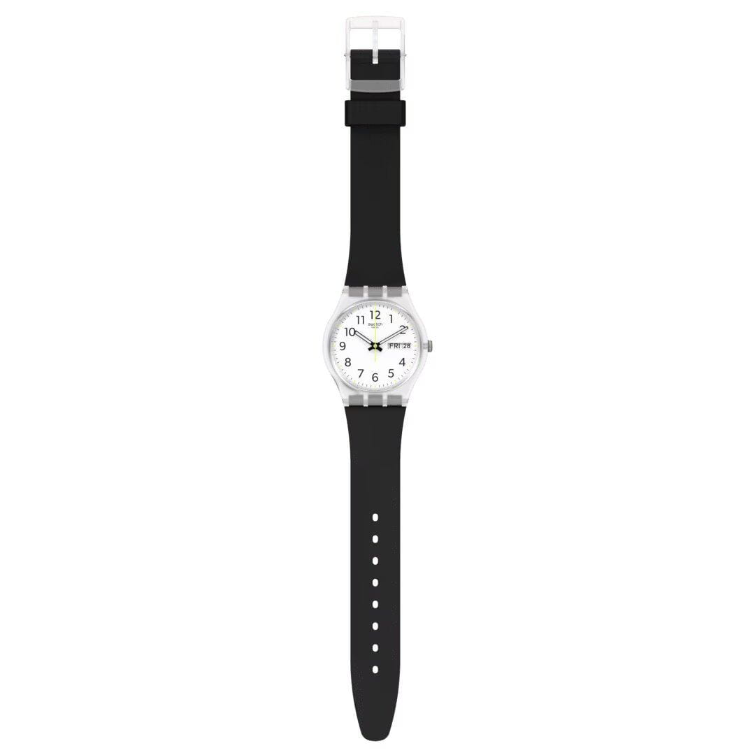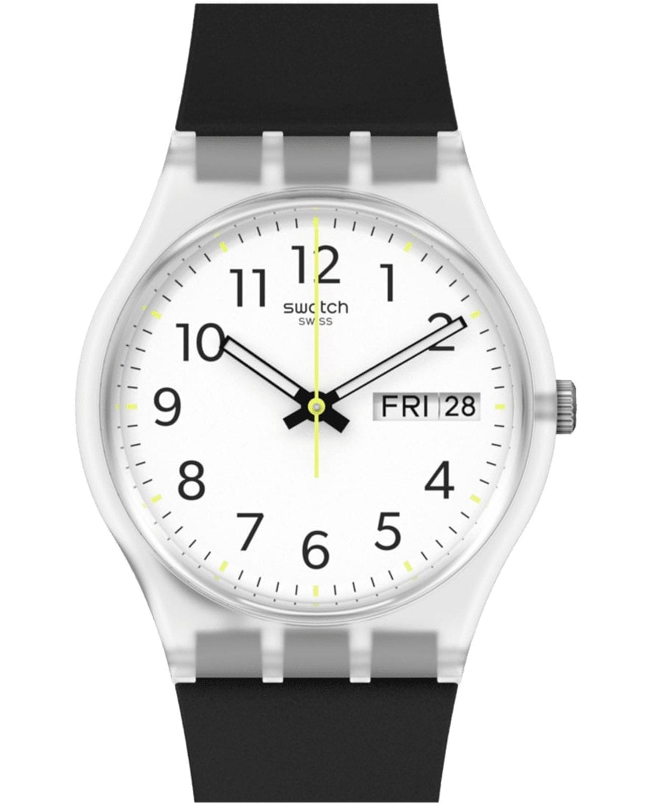 Часы Swatch  SO28K701 — это стильный и современный аксессуар, который идеально подходит для повседневного ношения. Они имеют черный ремешок и прозрачный корпус из высококачественного биоматериала. Стрелки с люминесцентным покрытиемЛюминесцентное покрытиеПозволяет считывать показания времени в темноте. Производители наносят на стрелки, часовые индексы, безель или поверхность циферблата светонакопительный состав, дающий холодное свечение.. Крупные контрастные цифры хорошо читаются на белом циферблате, окошко даты и дня находится на 3 часах. Стекло часов -  из прочного хезалита, который устойчив к царапинам и ударам, что гарантирует долговечность изделия.  Внутри часов установлен надежный кварцевый механизм, который обеспечивает точность хода. Эти часы водонепроницаемы до 30 метров, что позволяет не беспокоиться о случайных брызгах или дождевых каплях. Ремешок  выполнен из биоматериала и имеет регулируемую длину, застежка классическая из алюминия. Swatch SO28K701 — это идеальный выбор для тех, кто ценит сочетание стиля, комфорта и функциональности в одном аксессуаре.