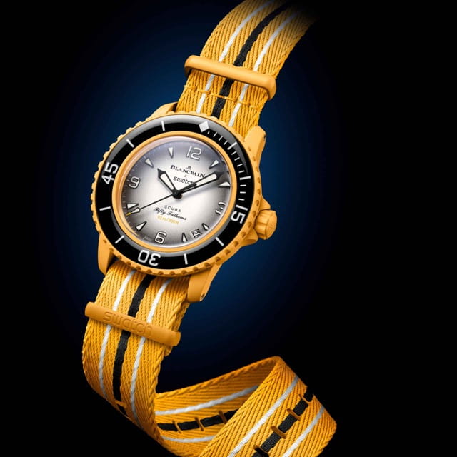 Часы Swatch Swatch Blancpain Fifty Fathoms Scuba SO35P100CS - часы отдают дань уважения модели Fifty Fathoms от Blancpain, первым настоящим часам для дайвинга. Оранжевый корпус и заводная головка часов изготовлены из материала Bioceramic. Слово "Swatch" выгравировано на внешней левой стороне корпуса. Металлический циферблат напечатан в несколько слоев цвета для создания эффекта градиента. Часовые индексы, часовая и минутная стрелки, а также шкала на безеле обогащены люминесцентным покрытиемЛюминесцентное покрытиеПозволяет считывать показания времени в темноте. Производители наносят на стрелки, часовые индексы, безель или поверхность циферблата светонакопительный состав, дающий холодное свечение. Grade A Super-LumiNova® для превосходной читаемости в темноте. Часы оснащены черным однонаправленным вращающимся безелемБезельВнешний ободок, закрепляющий стекло. В спортивных часах так называется поворотное кольцо с делениями на циферблате, выполняет роль таймера – замеряет отрезки времени на шкале. Неподвижный безель – элемент декора. Однонаправленно вращающийся безель на дайверских часах позволяет фиксировать моменты погружения и выныривания на поверхность. из материала Bioceramic и стеклом из биоматериалов. Механизм SISTEM51 виден благодаря прозрачному сапфировому стеклу и украшен цифровым изображением Тихого океана. На задней крышке часов можно найти пять вдохновляющих надписей: СТРАСТЬ К ДАЙВИНГУ – ЛИЦЕНЗИЯ НА ИССЛЕДОВАНИЕ – ДЫХАНИЕ ОКЕАНА – ЗАЩИЩАЙ ТО, ЧТО ЛЮБИШЬ и ПОГРУЗИСЬ. Ремешок NATO изготовлен из переработанных рыболовных сетей, извлеченных из моря. Пряжка и петли сделаны из материала Bioceramic.
