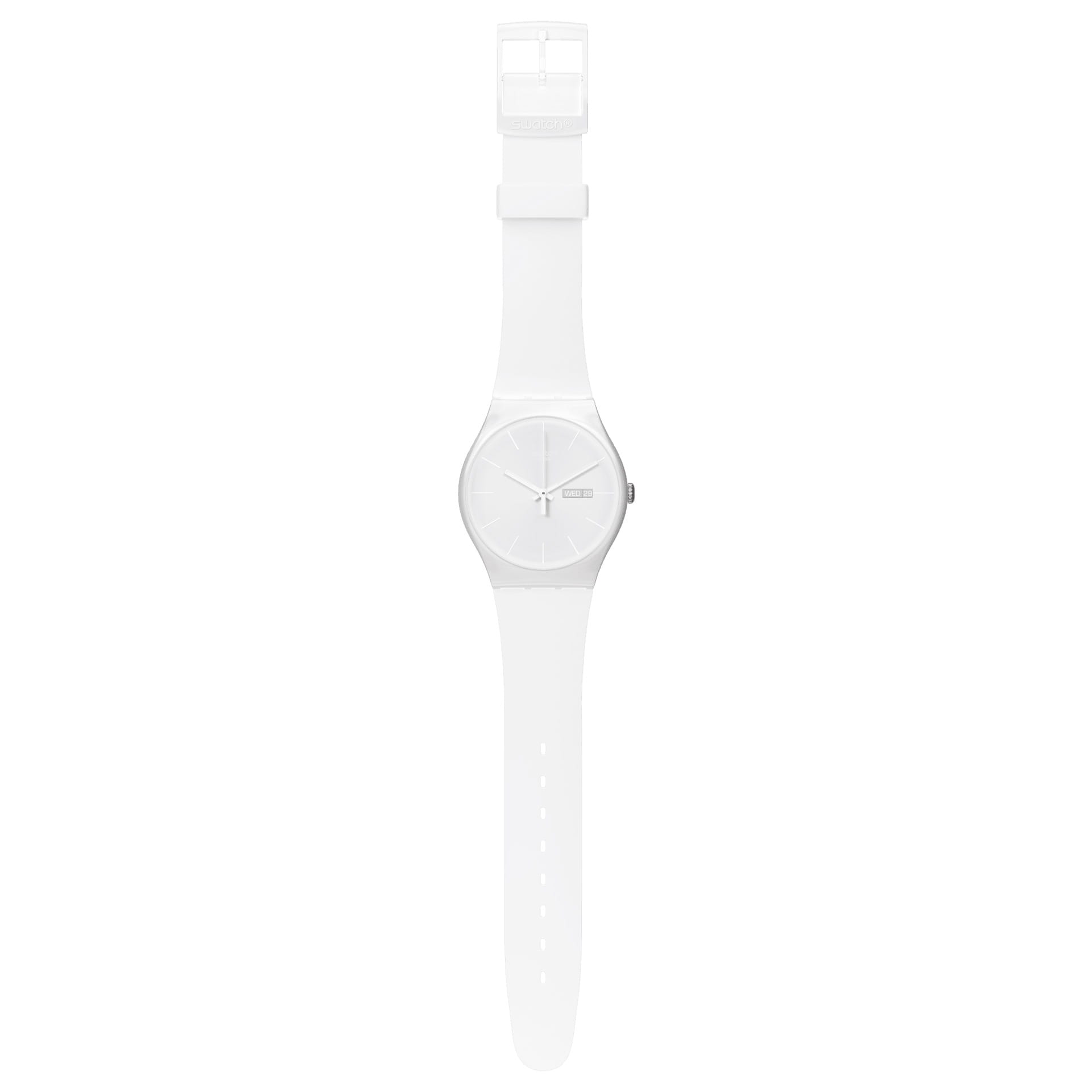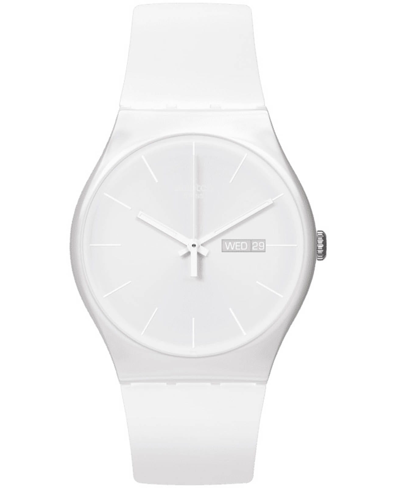 Часы Swatch SUOW701 — это стильный и современный аксессуар для тех, кто ценит лёгкость и комфорт. Часы идеально подойдут как для мужчин, так и для женщин. Элегантный и запоминающийся дизайн, в котором белый цвет создает настроение и атмосферу.  Прочный белый силиконовый ремешок и петелька этих часов сочетаются с прочным корпусом и пряжкой из матово-белого пластика. Белый циферблат украшен тонкими белыми часовыми индексами тон в тон, а в положении "3 часа" - элегантным окошком дня/даты, выполненным белым по светло-серому. На часовую, минутную стрелки белого цвета нанесено люминесцентное покрытиеЛюминесцентное покрытиеПозволяет считывать показания времени в темноте. Производители наносят на стрелки, часовые индексы, безель или поверхность циферблата светонакопительный состав, дающий холодное свечение., которое светится в темноте, создавая необычное изображение. Водозащита 30 метров делает часы практичными для повседневного использования. Эти часы подойдут для повседневного ношения и станут ярким акцентом в вашем наряде.
