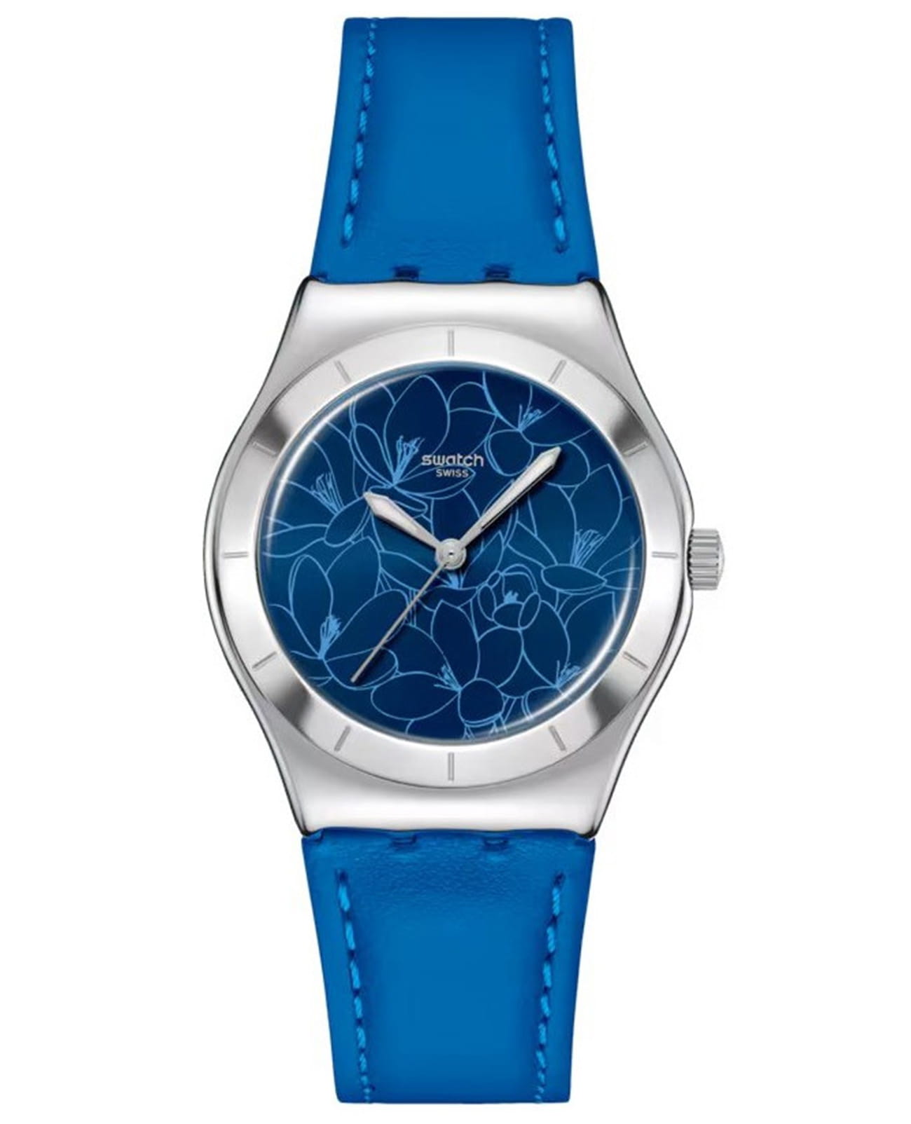 Модель Swatch YLS235 — это утончённые женские часы с изысканным дизайном и надёжным механизмом. Корпус диаметром 33 мм выполнен из нержавеющей стали, подчёркивая элегантность и долговечность модели. Циферблат украшен изящным цветочным узором, а стрелки покрыты люминесцентным покрытиемЛюминесцентное покрытиеПозволяет считывать показания времени в темноте. Производители наносят на стрелки, часовые индексы, безель или поверхность циферблата светонакопительный состав, дающий холодное свечение., что обеспечивает хорошую читаемость в условиях недостаточного освещения. Часы оснащены швейцарским кварцевым механизмом, обеспечивающим точный и стабильный ход. Циферблат защищён минеральным стекломМинеральное стеклоМинеральное стекло представляет собой искусственно выращенный минерал кварца. Такое стекло отличается особой устойчивостью к повреждениям и царапинам. Уступает по некоторым качествам сапфировому стеклу., устойчивым к мелким царапинам. Модель обладает водонепроницаемостью до 30 метров — подходит для повседневной носки, включая контакт с водой в бытовых ситуациях. Браслет выполнен из кожи на стандартной застёжке, которая надёжно фиксирует часы на запястье и придаёт образу завершённость. Swatch — это гармония стиля, практичности и швейцарского качества в компактной и женственной форме.