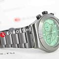 Часы Swatch YVM407G — это стильный и современный аксессуар для тех, кто ценит лёгкость и комфорт. Этот стильный хронографХронографФункция позволяет измерять отрезки времени с особой точностью: часы, минуты, секунды. Верным признаком хронографа является наличие на циферблате 3 дополнительных окошек-счётчиков. оснащен зеленым циферблатом с радиальной полировкой, черными часовой и минутной стрелками-скелетонами. Кончик зеленой секундной стрелки хронографа светится в темноте благодаря люминесцентному покрытиюЛюминесцентное покрытиеПозволяет считывать показания времени в темноте. Производители наносят на стрелки, часовые индексы, безель или поверхность циферблата светонакопительный состав, дающий холодное свечение.. Стрелки мини-циферблатов черные. На внешнее кольцо темно-серой расцветки нанесен черно-зеленый принт с минутной шкалой. Часовые индексы светятся в темноте благодаря люминесцентному покрытиюЛюминесцентное покрытиеПозволяет считывать показания времени в темноте. Производители наносят на стрелки, часовые индексы, безель или поверхность циферблата светонакопительный состав, дающий холодное свечение., а между отметками 4 и 5 часов расположено черное окошко календаря с белым принтом. Матированный корпус, безельБезельВнешний ободок, закрепляющий стекло. В спортивных часах так называется поворотное кольцо с делениями на циферблате, выполняет роль таймера – замеряет отрезки времени на шкале. Неподвижный безель – элемент декора. Однонаправленно вращающийся безель на дайверских часах позволяет фиксировать моменты погружения и выныривания на поверхность., пушеры и браслет с застёжкой «бабочка»Застёжка "бабочка"Такой вид застёжки дополняется предохранителями, помогающими избежать случайного раскрытия браслета. Обладают изящным исполнением. выполнены из нержавеющей стали с черным PVDPVDУльтратонкое покрытие наносится в технике вакуумного напыления, сочетает в себе нитрид титана особой прочности со слоем золота или оксида хрома. Несёт в себе декоративную или защитную функцию. покрытием. Водозащита 30 метров делает часы практичными для повседневного использования. Эти часы подойдут для повседневного ношения и станут ярким акцентом в вашем наряде.