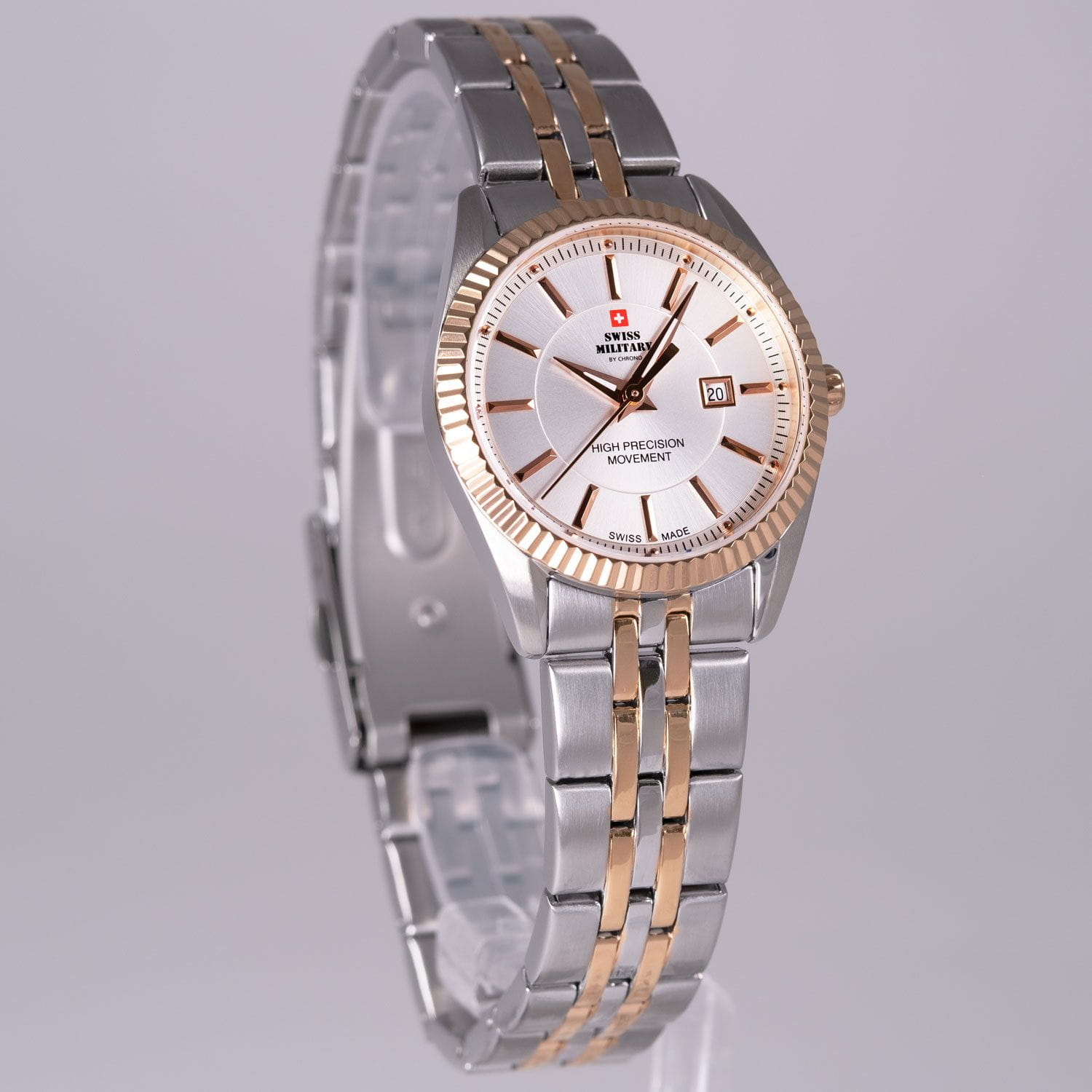 Женские швейцарские наручные часы Swiss Military by Chrono SM34066.07, кварцевый механизм с высокой точностью. Минеральное стекло устойчивое к появлению царапин, обладающее высокой прозрачностью. Класс водозащиты: 50 метров, позволит защитить корпус от случайных брызг или капель дождя. Корпус часов изготовлен из стали с частичным IP-покрытиемIP-покрытиеМетод ионного напыления. Демонстрирует повышенную устойчивость к истиранию, окислению и химическим веществам. Под воздействием высокого давления и температуры около 1500°C молекулы металла надёжно соединяются с частицами корпуса часов. . Раскладная застёжкаРаскладная застёжкаТакой тип застёжки используется только на браслетах из металла. Она никогда не раскрывается полностью, происходит разделение на 2 и более частей. Раскладывающая застёжка снизит вероятность потери часов к минимуму..