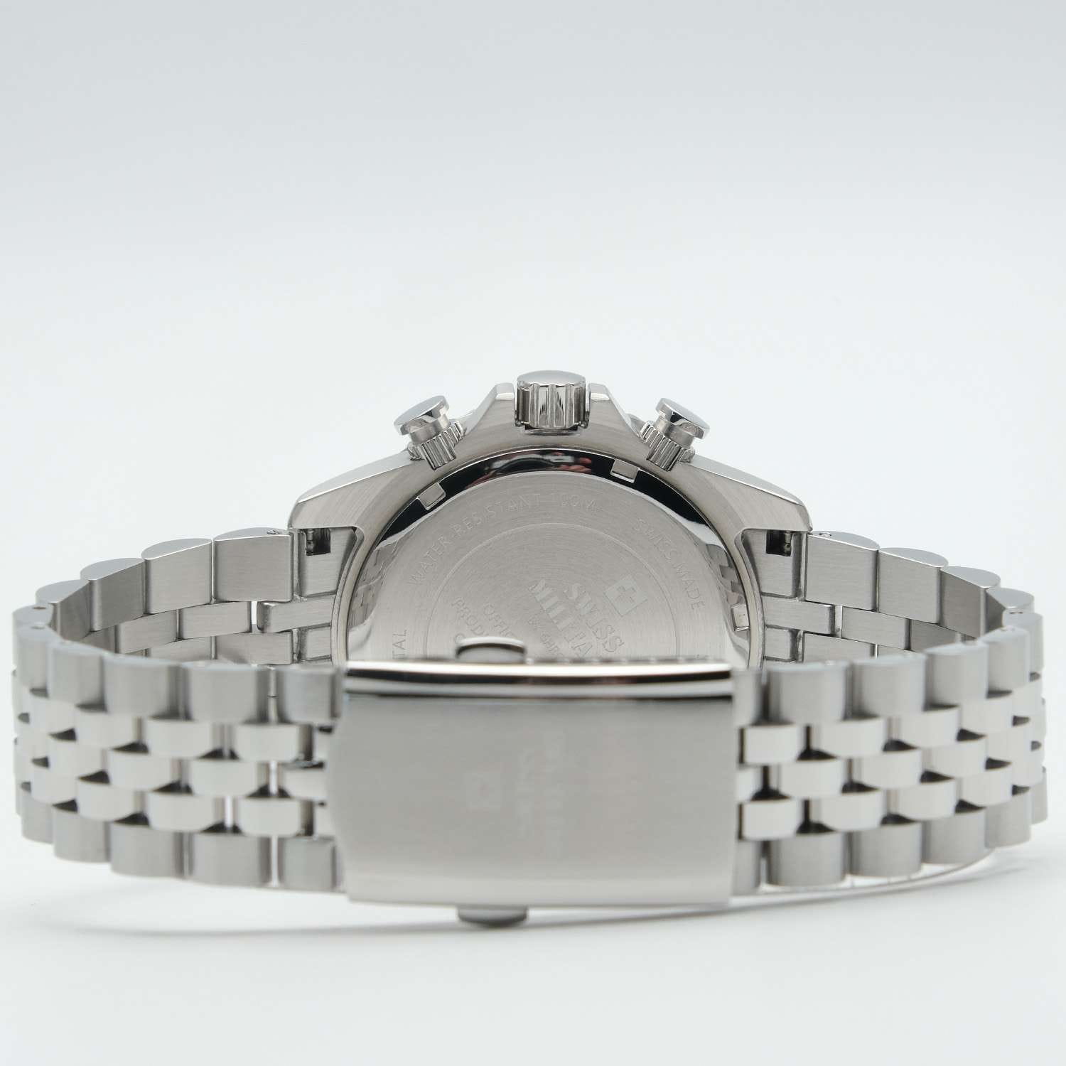 Часы Swiss Military by Chrono Sports Chronograph SM34103.06 — это спортивный хронограф, сочетающий стиль и функциональность. Корпус диаметром 43 мм выполнен из нержавеющей стали, что обеспечивает долговечность и надёжность. Циферблат украшен люминесцентными индексамиЛюминесцентное покрытиеПозволяет считывать показания времени в темноте. Производители наносят на стрелки, часовые индексы, безель или поверхность циферблата светонакопительный состав, дающий холодное свечение. и стрелками, что позволяет легко считывать время в любых условиях. Защиту циферблата обеспечивает сапфировое стеклоСапфировое стеклоПрочный и надёжный материал из кристалла сапфира синтетического происхождения, характеризующийся особой твёрдостью и устойчивостью к царапинам и повреждениям., устойчивое к царапинам. Модель оснащена вращающимся безелемБезельВнешний ободок, закрепляющий стекло. В спортивных часах так называется поворотное кольцо с делениями на циферблате, выполняет роль таймера – замеряет отрезки времени на шкале. Неподвижный безель – элемент декора. Однонаправленно вращающийся безель на дайверских часах позволяет фиксировать моменты погружения и выныривания на поверхность. с PVD-покрытиемPVDУльтратонкое покрытие наносится в технике вакуумного напыления, сочетает в себе нитрид титана особой прочности со слоем золота или оксида хрома. Несёт в себе декоративную или защитную функцию., что добавляет дополнительную функциональность. Водозащита до 10 ATM делает часы подходящими для плавания и других водных активностей. Швейцарский кварцевый механизм Ronda 5040.D обеспечивает высокую точность измерения времени и функции хронографаХронографФункция позволяет измерять отрезки времени с особой точностью: часы, минуты, секунды. Верным признаком хронографа является наличие на циферблате 3 дополнительных окошек-счётчиков.. Апертура даты в позиции 4 часов. Браслет из нержавеющей стали c раскладной застёжкойРаскладная застёжкаТакой тип застёжки используется только на браслетах из металла. Она никогда не раскрывается полностью, происходит разделение на 2 и более частей. Раскладывающая застёжка снизит вероятность потери часов к минимуму. гарантирует комфортное ношение и надёжную фиксацию. Swiss Military — это идеальный выбор для мужчин, которые ценят швейцарское качество и ведут активный образ жизни.