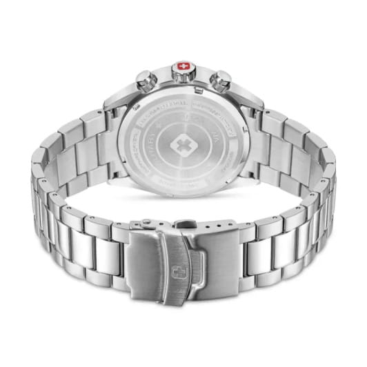 Мужские швейцарские часы Swiss Military Hanowa SMWGI0004206 – это элегантные часы, сочетающие в себе классический дизайн и современную функциональность. Корпус из нержавеющей стали диаметром 43 мм сбалансирован и элегантен. Сапфировое стеклоСапфировое стеклоПрочный и надёжный материал из кристалла сапфира синтетического происхождения, характеризующийся особой твёрдостью и устойчивостью к царапинам и повреждениям. с антибликовым покрытием защищает циферблат от царапин и обеспечивает отличную читаемость при любом освещении. Браслет с раскладной застёжкойРаскладная застёжкаТакой тип застёжки используется только на браслетах из металла. Она никогда не раскрывается полностью, происходит разделение на 2 и более частей. Раскладывающая застёжка снизит вероятность потери часов к минимуму. идеально дополняют дизайн часов, обеспечивая комфортное ношение. Люминесцентное покрытиеЛюминесцентное покрытиеПозволяет считывать показания времени в темноте. Производители наносят на стрелки, часовые индексы, безель или поверхность циферблата светонакопительный состав, дающий холодное свечение. стрелок и меток позволит вам следить за временем даже в полной темноте. Циферблат с точным механизмом хронографаХронографФункция позволяет измерять отрезки времени с особой точностью: часы, минуты, секунды. Верным признаком хронографа является наличие на циферблате 3 дополнительных окошек-счётчиков. и хорошо заметным индикатором даты в положении «4 часа». ТахиметрТахиметрРазмеченная шкала, располагается на ободке или безеле часов. Тахиметр позволяет рассчитать скорость на определённом участке пути, расстояние измеряется в километрах или милях. по внешнему краю. Водонепроницаемость до 100 метров хорошо подходят для повседневного ношения и занятий водными видами спорта.