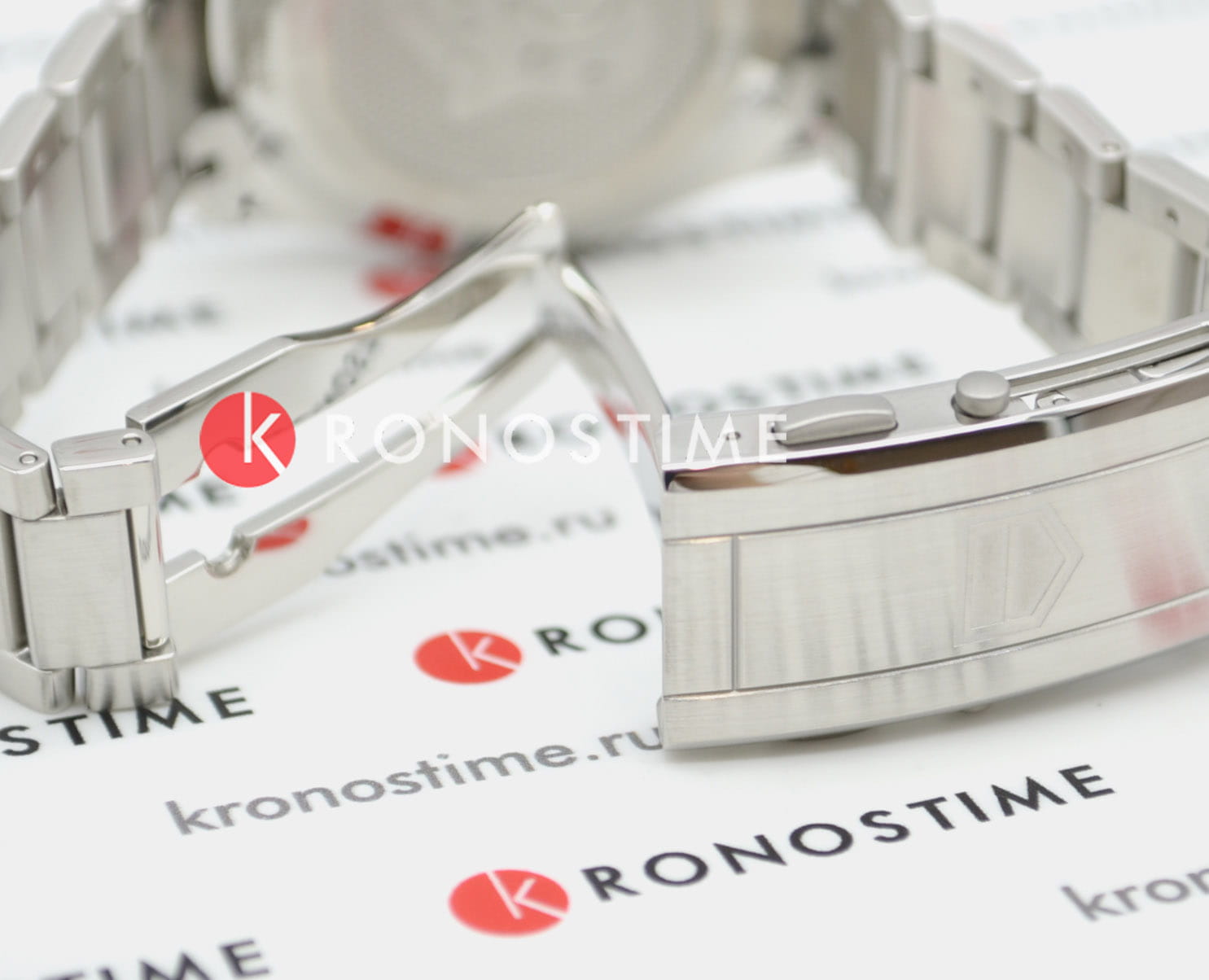 TAG Heuer Aquaracer Professional 300 WBP201B.BA0632 с синим матовым циферблатом в узоре «солнечные лучи», механический механизм (автоматический калибр) с высокой точностью. Сапфировое стекло устойчивое к появлению царапин, обладающее высокой прозрачностью. Класс водозащиты: 300 метров, позволит плавать, нырять и заниматься другими водными видами спорта. Корпус часов изготовлен из стали, серебристого цвета. Вращающийся в одном направлении ярко-синий керамический безель с 12 гранями и с 60-минутной шкалой измерения времени с момента погружения, соответствует корпусу и циферблату. Новый стальной корпус 43 мм сочетает в себе матовую и полированную поверхности, предлагая четкую геометрию и прочность в более тонком профиле для максимального комфорта. Устойчивый к давлению клиновидный стальной браслет с системой точной регулировки для серьезных дайверов фиксируется двумя предохранительными кнопками на застежке.
