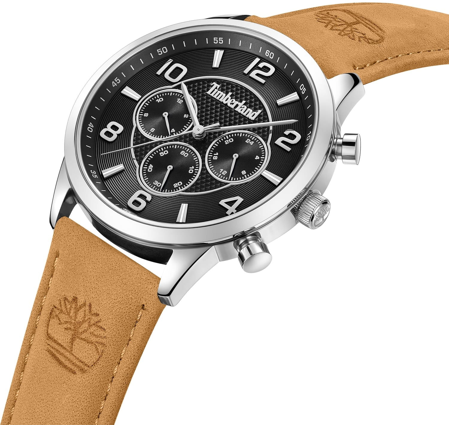Американские мужские часы Timberland TDWGF0042102 имеют кварцевый механизм с высокой точностью. ТахиметрТахиметрРазмеченная шкала, располагается на ободке или безеле часов. Тахиметр позволяет рассчитать скорость на определённом участке пути, расстояние измеряется в километрах или милях.. Класс водозащиты: 50 метров, позволит защитить корпус от случайных брызг или капель дождя. Корпус часов изготовлен из стали. Прочное минеральное стеклоМинеральное стеклоМинеральное стекло представляет собой искусственно выращенный минерал кварца. Такое стекло отличается особой устойчивостью к повреждениям и царапинам. Уступает по некоторым качествам сапфировому стеклу.. Метки c люминесцентным покрытиемЛюминесцентное покрытиеПозволяет считывать показания времени в темноте. Производители наносят на стрелки, часовые индексы, безель или поверхность циферблата светонакопительный состав, дающий холодное свечение.. Кожаный ремешок с классической застежкой и системой быстрой замены.