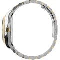 Часы Timex TW2U53900 из коллекции Heritage Waterbury — это элегантный женский аксессуар, объединяющий классический стиль и современные технологии. Корпус диаметром 34 мм и браслет выполнены из нержавеющей стали с двухцветным серебристо-золотистым PVD-покрытиемPVDУльтратонкое покрытие наносится в технике вакуумного напыления, сочетает в себе нитрид титана особой прочности со слоем золота или оксида хрома. Несёт в себе декоративную или защитную функцию., что придаёт часам изысканный вид. Серебристый циферблат украшен кристаллами Swarovski, а стрелки и индексы покрыты люминесцентным составомЛюминесцентное покрытиеПозволяет считывать показания времени в темноте. Производители наносят на стрелки, часовые индексы, безель или поверхность циферблата светонакопительный состав, дающий холодное свечение., обеспечивая отличную читаемость даже в условиях низкой освещённости.