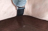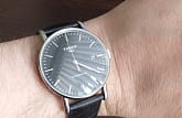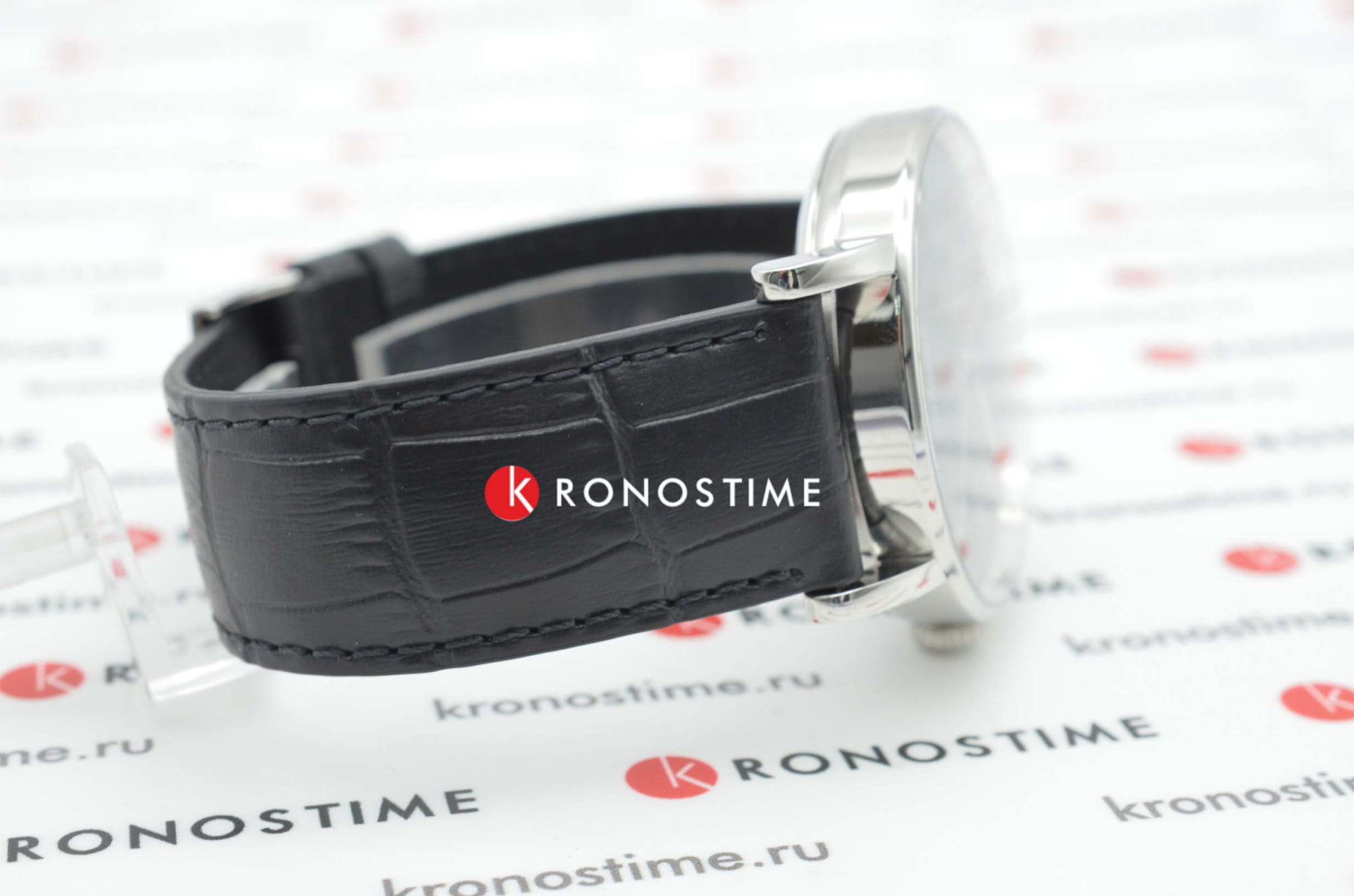 Минималистичный чёрный циферблат с серебристыми часовыми индексами станет универсальным вариантом на каждый день. Наручные часы имеют стильный ремешок из натуральной кожи, тиснение на поверхности имитирует рисунок кожи крокодила. Внутри стального корпуса находится механизм SwissmaticSwissmaticШвейцарский автоматический калибр от компании ETA с 3-х дневным запасом хода и 19 камнями в механизме (C15.111), отличается высокой точностью хода. с запасом хода 72 часа, за движением его деталей можно наблюдать через прозрачную заднюю крышку. Надёжное стекло из сапфира. Водостойкость 3 бар. Индикация даты. Габариты: 40 x 40 x 10,6 мм.