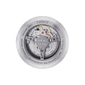 Брендовый аксессуар отражает стиль оформления, присущий гоночным машинам 60-х годов. Модель отличается эксклюзивным исполнением благодаря ребристому циферблату с оригинальными мини-счётчиками, привлекательности придаёт и керамический безельБезельВнешний ободок, закрепляющий стекло. В спортивных часах так называется поворотное кольцо с делениями на циферблате, выполняет роль таймера – замеряет отрезки времени на шкале. Неподвижный безель – элемент декора. Однонаправленно вращающийся безель на дайверских часах позволяет фиксировать моменты погружения и выныривания на поверхность.. Лучшим дополнением к общей картине стал перфорированый ремешок из натуральной кожи. Часы оснащены автоматическим механизмом ETA Valjoux A05.H21ValjouxПремиальный калибр от швейцарской компании ETA c уникальной отделкой механизма. Отличается увеличенным запасом хода от 45 до 60 часов, в зависимости от калибра, точность хода составляет +/- 5 секунд в сутки. премиальной категории с запасом хода 60 часов. Прозрачная задняя крышка корпуса. Выпуклое стекло из сапфира с антибликовым покрытием. Сохранение водостойкости при давлении 10 бар. Корпус из нержавеющей стали 316L. Люминесцентная подсветкаЛюминесцентное покрытиеПозволяет считывать показания времени в темноте. Производители наносят на стрелки, часовые индексы, безель или поверхность циферблата светонакопительный состав, дающий холодное свечение.. Отображение числа. . Габариты: 45 x 45 x 15,8 мм.