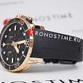 Спортивная модель в золотисто-чёрном исполнении станет завершающей деталью любого образа, придав индивидуальности и солидности. Часы сохраняют герметичность конструкции при давлении 30 бар, кнопки, заводная головка, задняя крышка завинчиваются. Высокоточный кварцевый механизм ETA G10.212. Корпус с PVD-покрытиемPVDУльтратонкое покрытие наносится в технике вакуумного напыления, сочетает в себе нитрид титана особой прочности со слоем золота или оксида хрома. Несёт в себе декоративную или защитную функцию.. Люминесцентная подсветкаЛюминесцентное покрытиеПозволяет считывать показания времени в темноте. Производители наносят на стрелки, часовые индексы, безель или поверхность циферблата светонакопительный состав, дающий холодное свечение. стрелок и часовых меток. Отображение даты, секундомер, хронографХронографФункция позволяет измерять отрезки времени с особой точностью: часы, минуты, секунды. Верным признаком хронографа является наличие на циферблате 3 дополнительных окошек-счётчиков.. Габариты: 45,5 x 45,5 x 12,8 мм.
