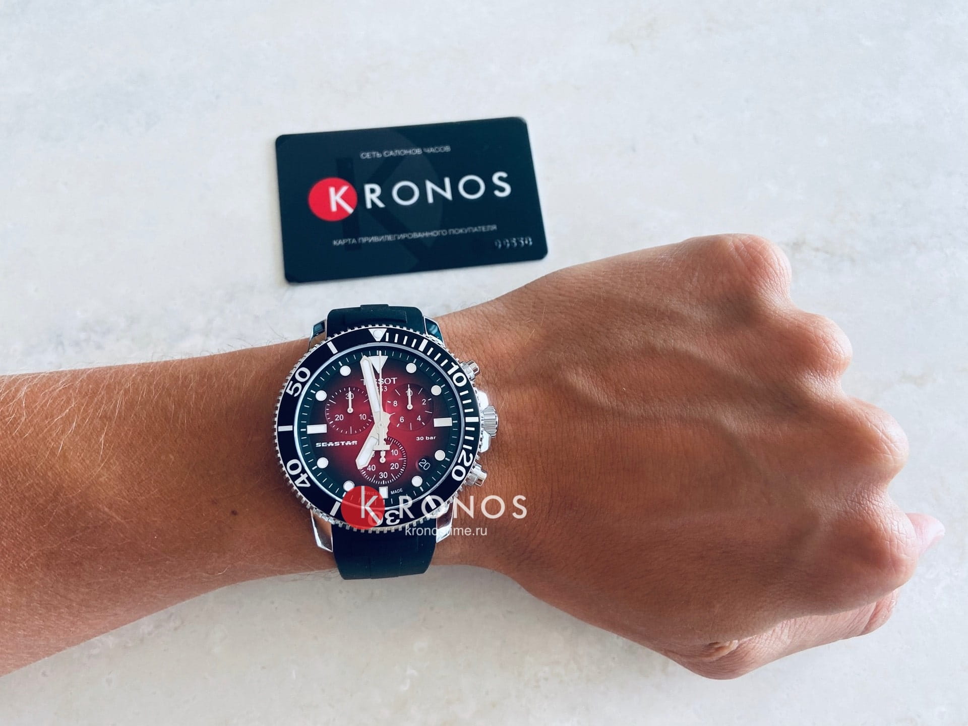 Мужские наручные часы входят в коллекцию Seastar 1000, стильная модель подходит для плавания и глубоководных исследований благодаря водостойкости при давлении до 30 бар.