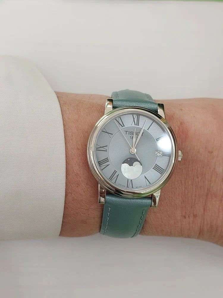 Женские швейцарские часы Tissot Carson Premium Lady Moonphase T122.223.16.353.00, кварцевый высокоточный механизм F05.841 с индикатором заряда батареи EOL.
