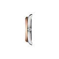 Tissot PR 100 34mm— изысканные женские швейцарские часы, созданные в элегантном классическом стиле. Корпус диаметром 34 мм выполнен из нержавеющей стали и украшен PVDPVDУльтратонкое покрытие наносится в технике вакуумного напыления, сочетает в себе нитрид титана особой прочности со слоем золота или оксида хрома. Несёт в себе декоративную или защитную функцию.-покрытием тёплого розового оттенка на безелеБезельВнешний ободок, закрепляющий стекло. В спортивных часах так называется поворотное кольцо с делениями на циферблате, выполняет роль таймера – замеряет отрезки времени на шкале. Неподвижный безель – элемент декора. Однонаправленно вращающийся безель на дайверских часах позволяет фиксировать моменты погружения и выныривания на поверхность., что придаёт образу благородство и утончённость. Серебристый циферблат с изящным солнечным узором оснащён аккуратными метками и стрелками в тон, а также практичным окошком даты на «3 часах». За надёжность отвечает швейцарский кварцевый механизм, гарантирующий точность хода. Модель защищена сапфировым стекломСапфировое стеклоПрочный и надёжный материал из кристалла сапфира синтетического происхождения, характеризующийся особой твёрдостью и устойчивостью к царапинам и повреждениям., устойчивым к царапинам, и укомплектована прочным стальным браслетом на застёжке-бабочке с кнопкамиЗастёжка "бабочка"Такой вид застёжки дополняется предохранителями, помогающими избежать случайного раскрытия браслета. Обладают изящным исполнением. , обеспечивающей комфортное ношение.